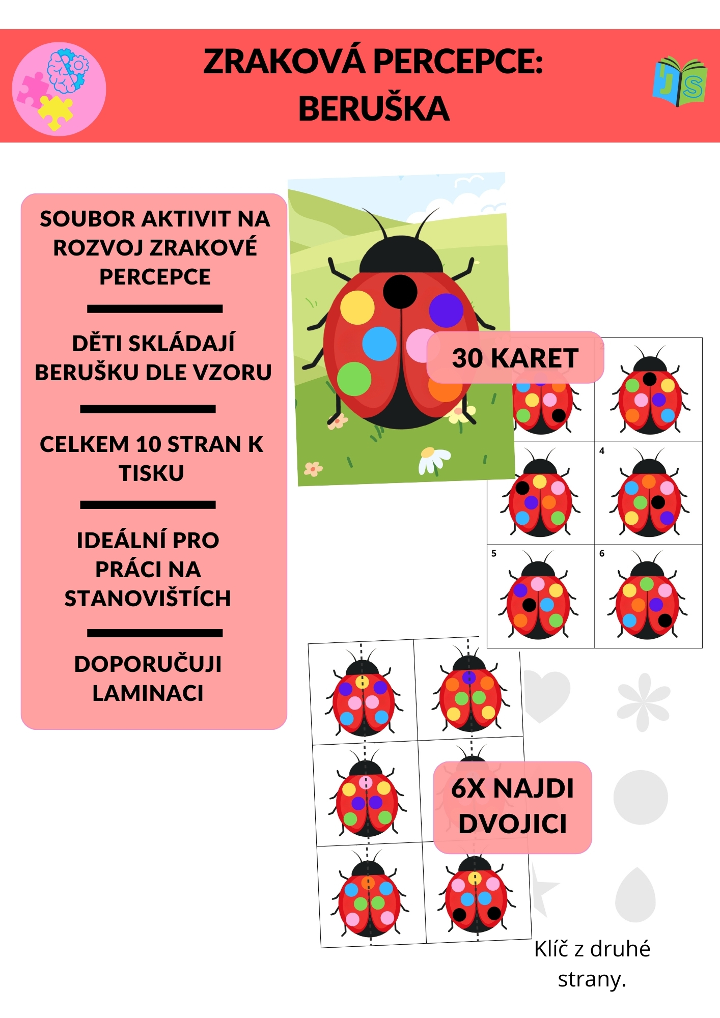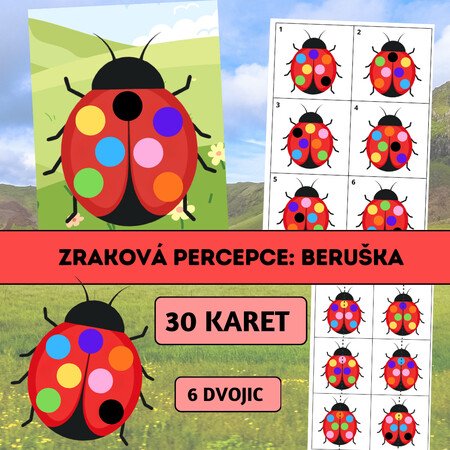 Zraková percepce: Beruška je hravý vzdělávací materiál zaměřený na rozvoj zrakového vnímání, pozornosti, vizuální paměti a prostorové orientace.