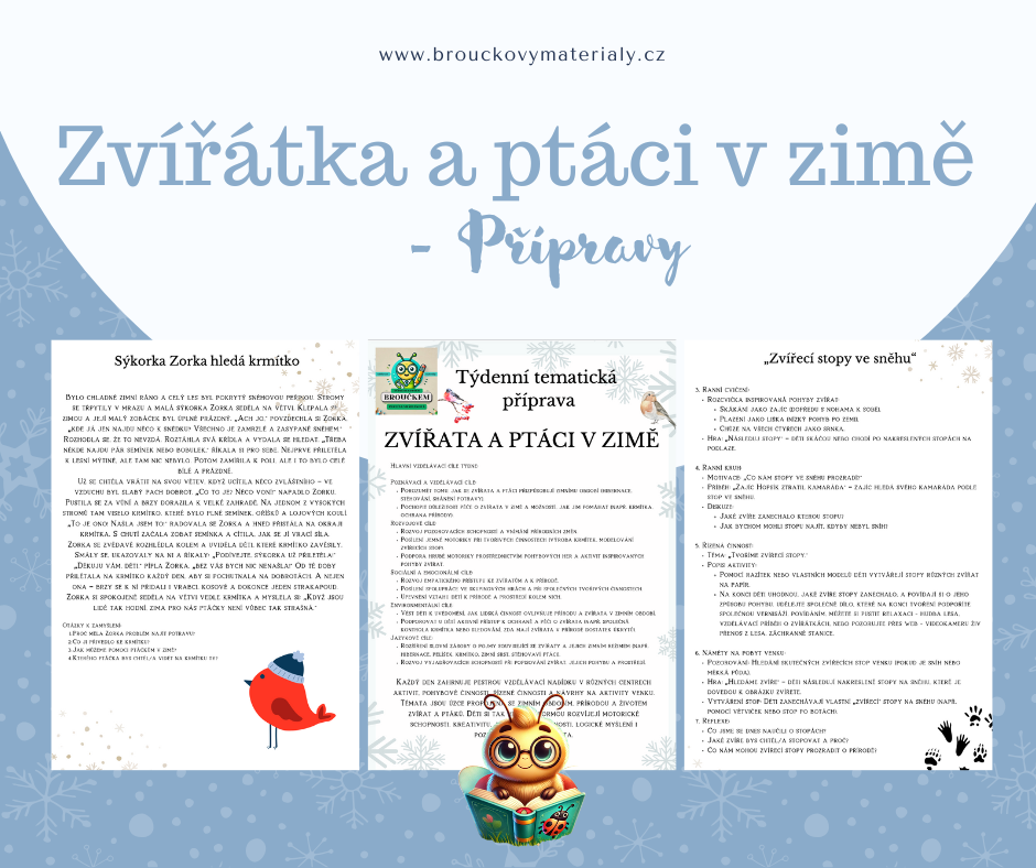 Příprava na téma Zvířata ptáci v zimě. Rozepsané cíle vzdělávací nabídka na celý týden ( Centra aktivit, pohybová činnost, ranní kruh, pohádka, řízená činnost, aktivity venku)