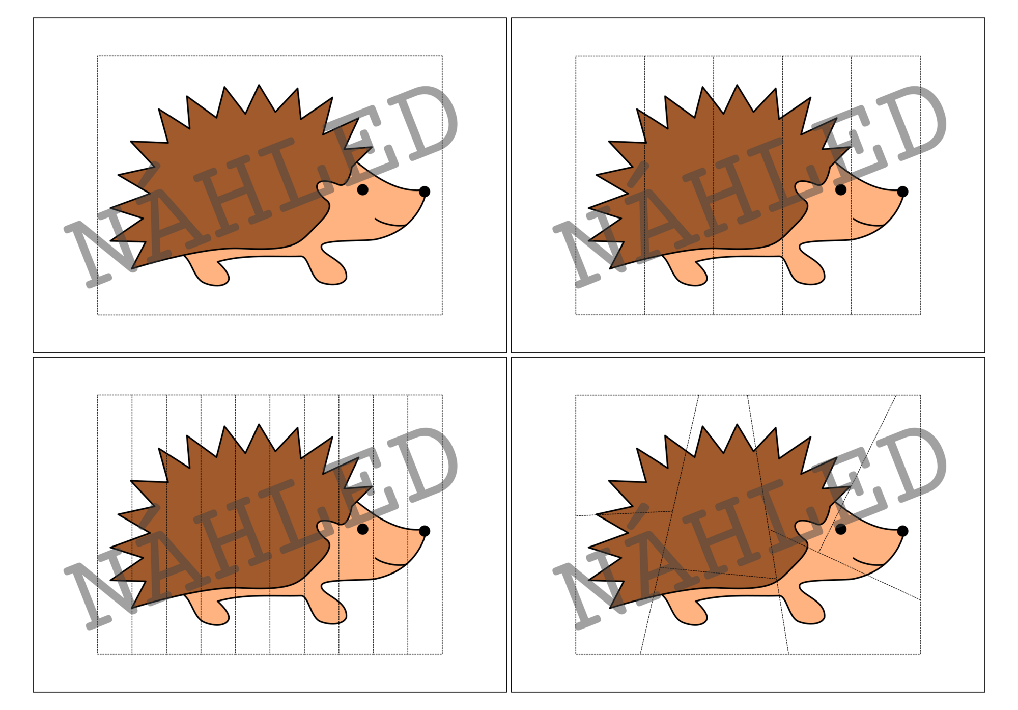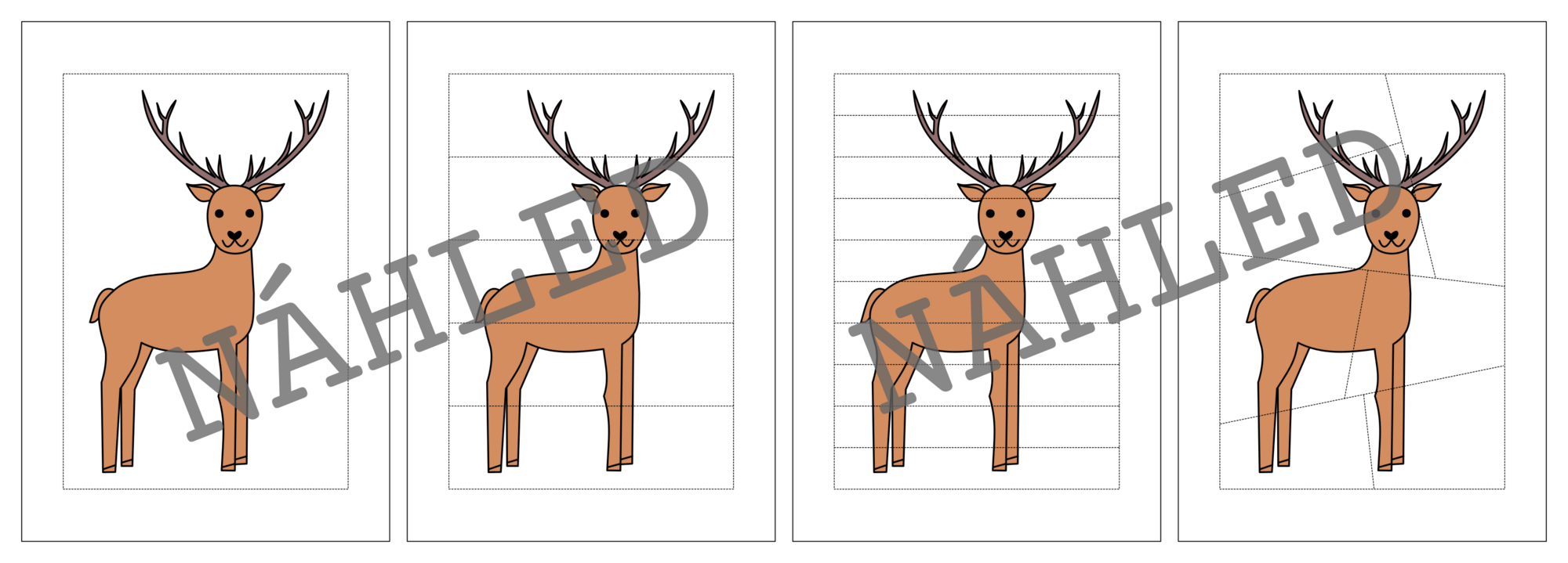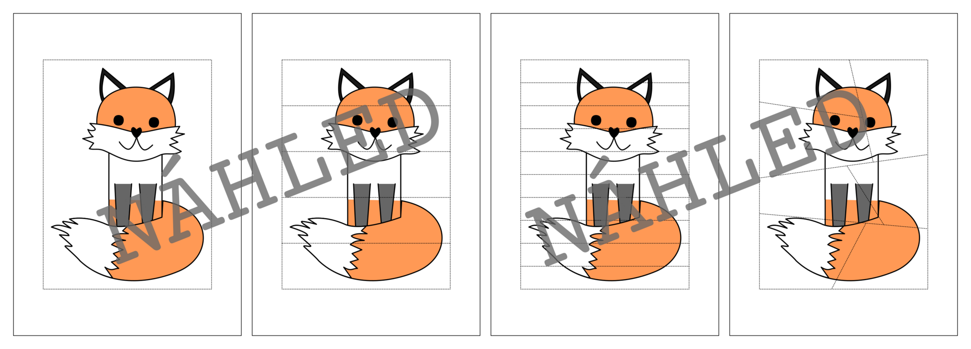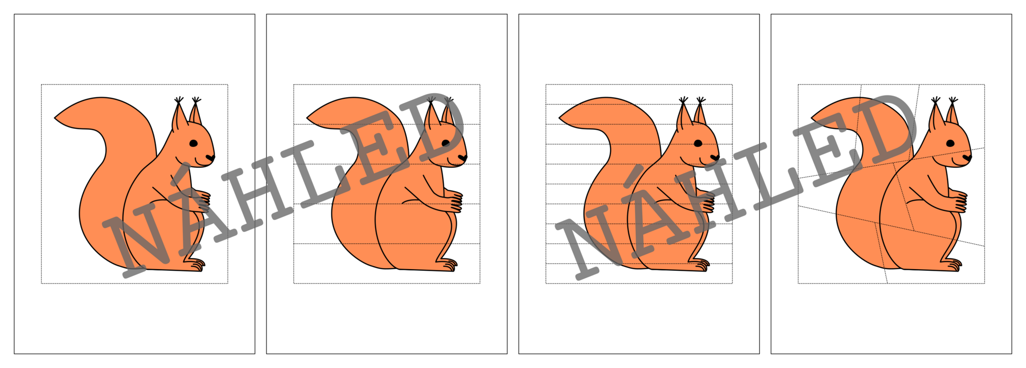 Vybrané stránky s náhledovými obrázky a skládačkami vytiskněte. Skládačky rozstříhejte podle přerušovaných čar. Náhledové obrázky a skládačky můžete zalaminovat.