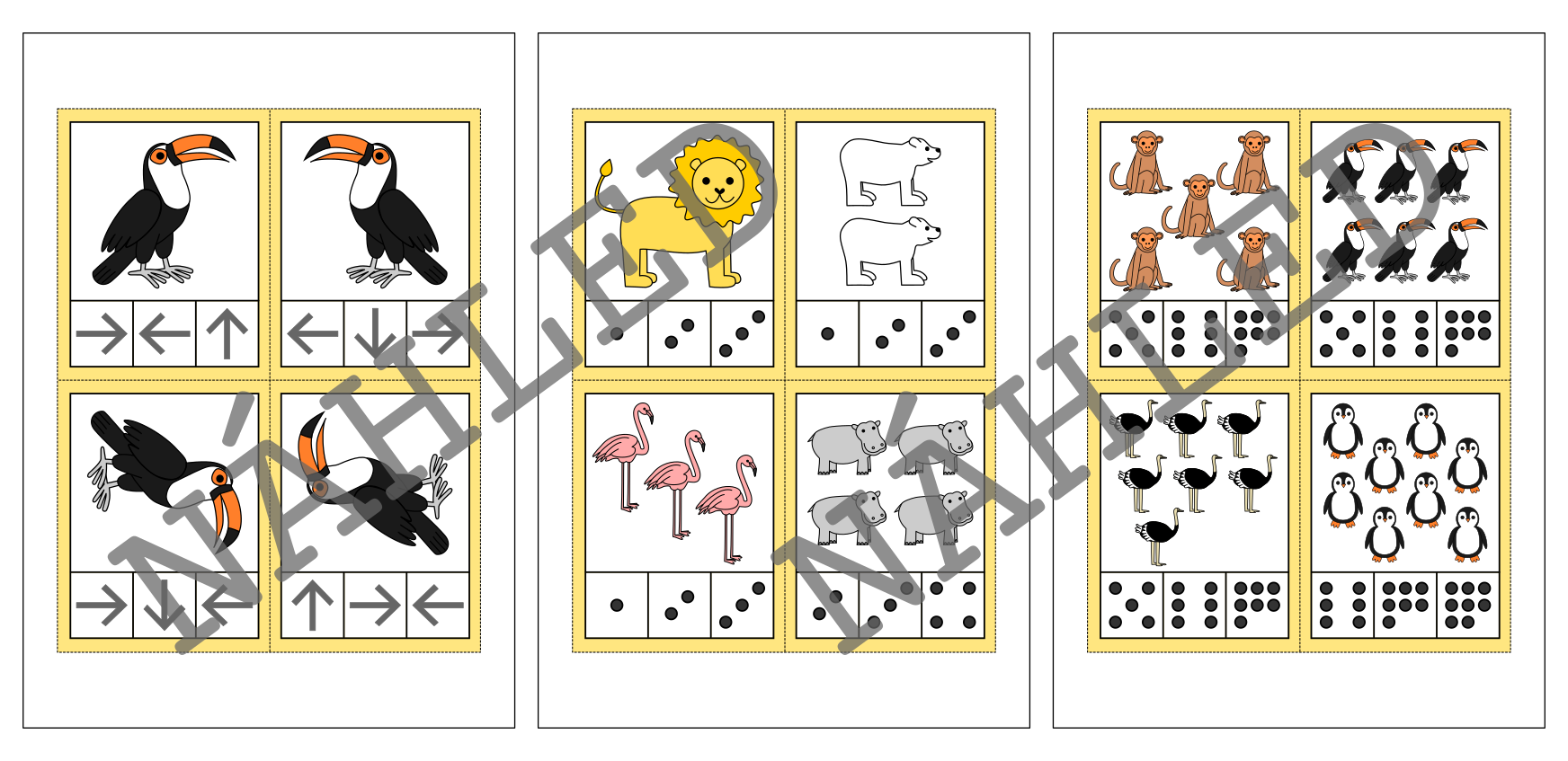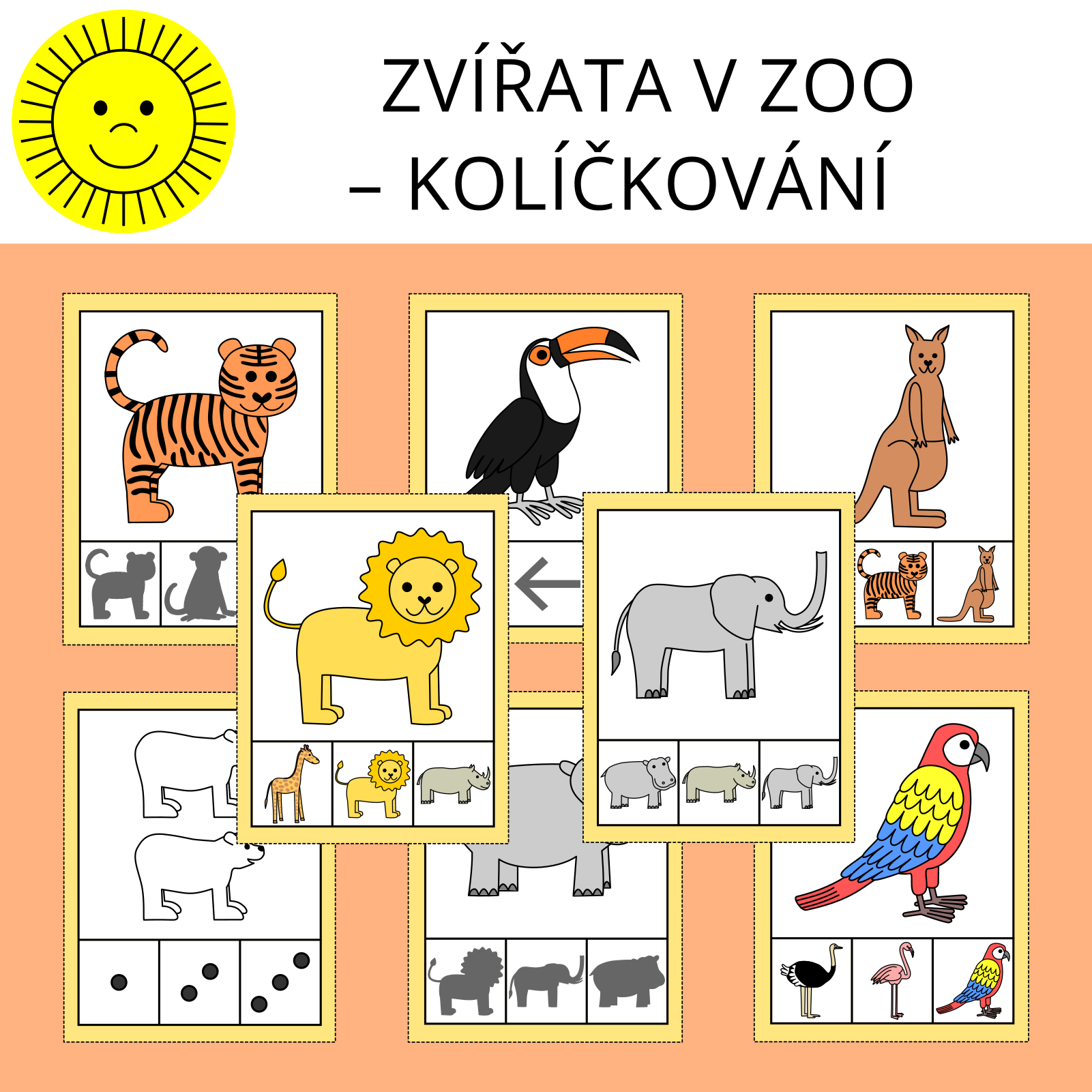 Materiál na téma zvířata v zoo slouží k procvičení zrakového vnímání a počítání. Obsahuje 44 kartiček.