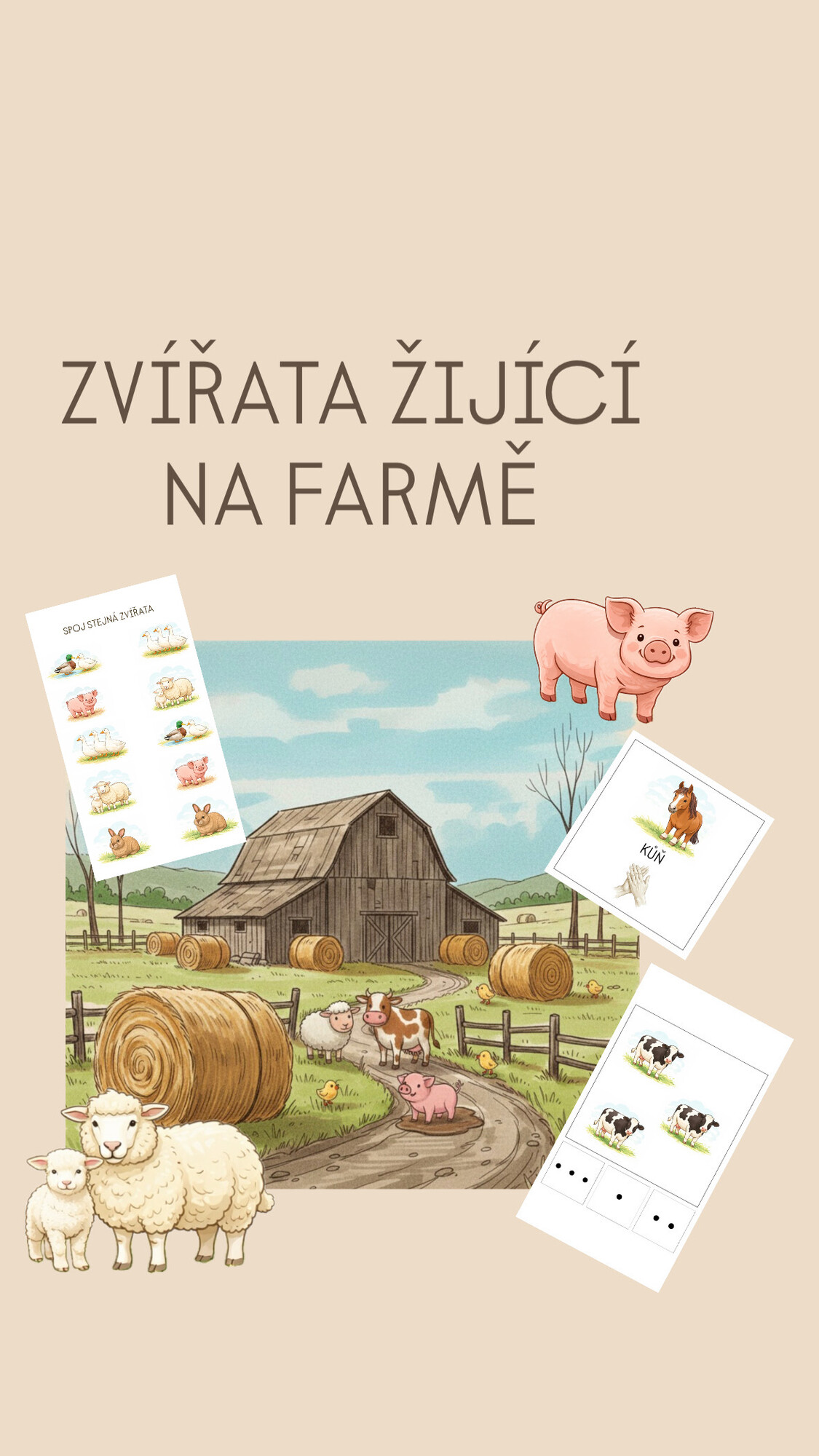 Materiály do MŠ na téma : Zvířata žijící na farmě.