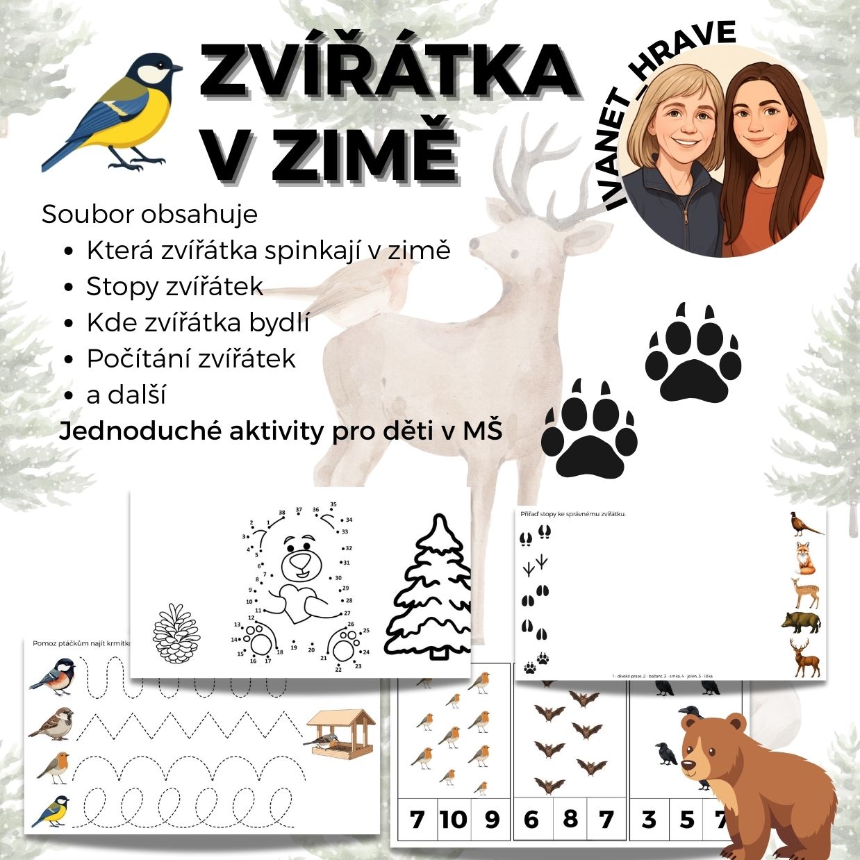 - 4 stránky (12 kartiček) kolíčkování. Počítání do 10