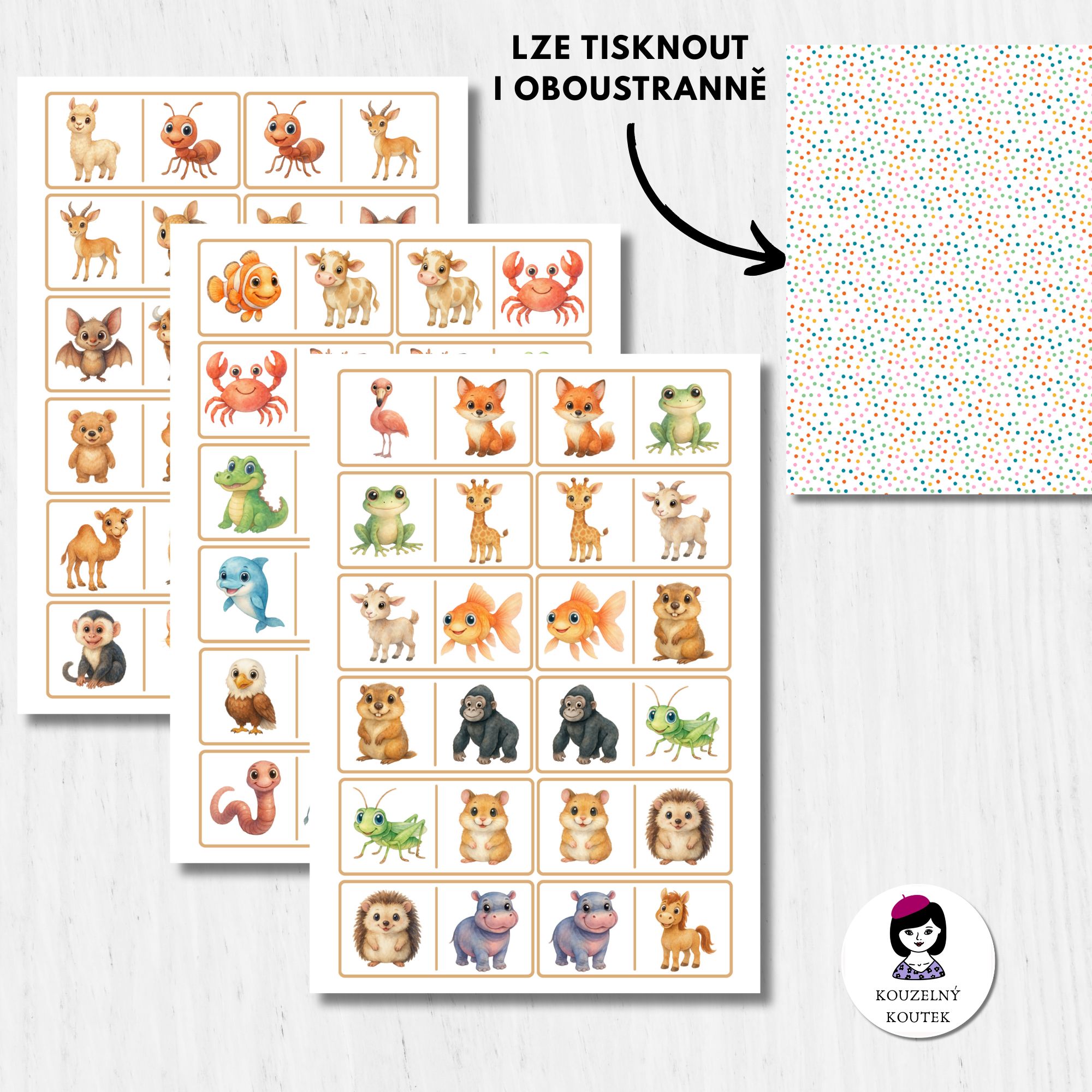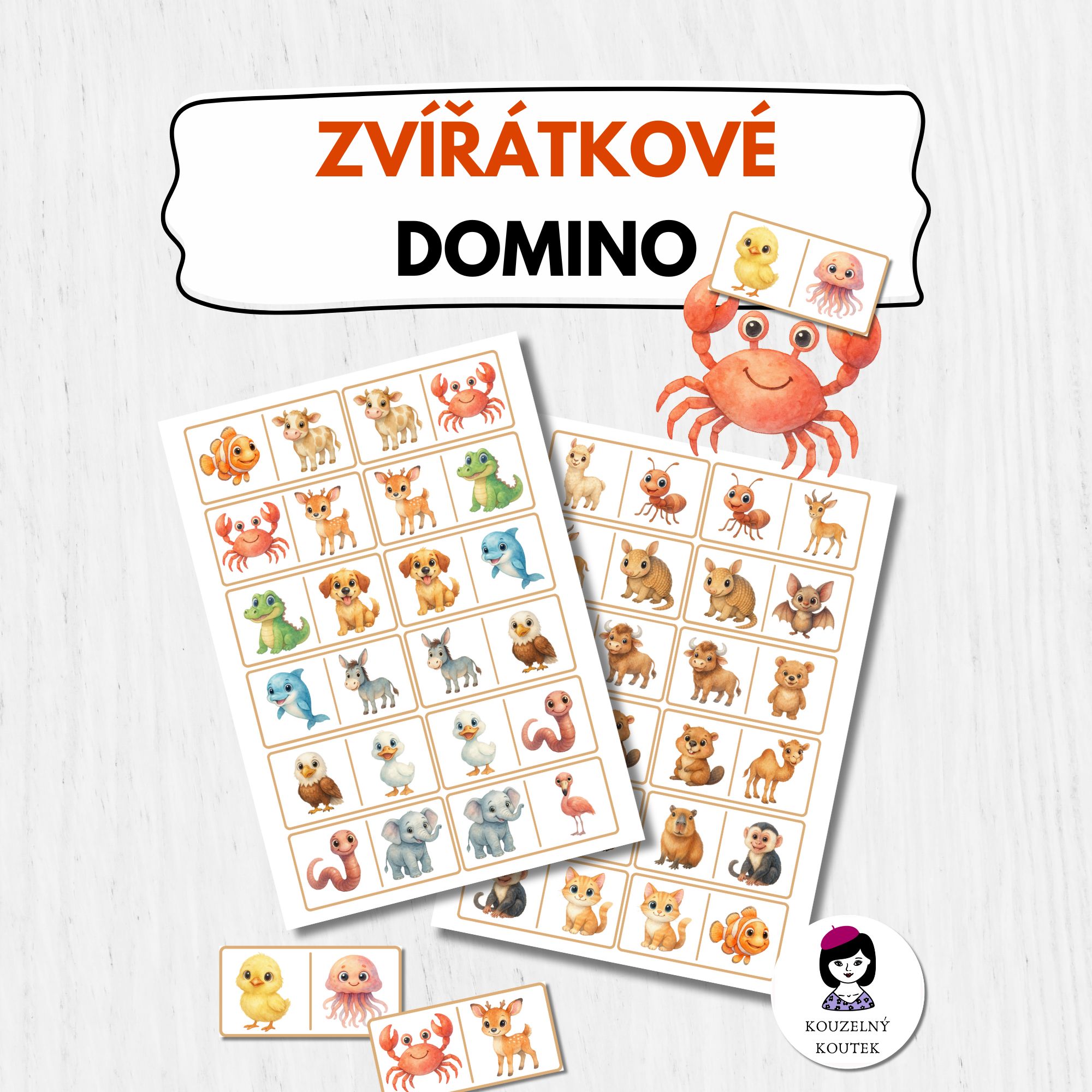 Domino je veselá a barevná hra. Obsahuje 40 kartiček se zvířátky.