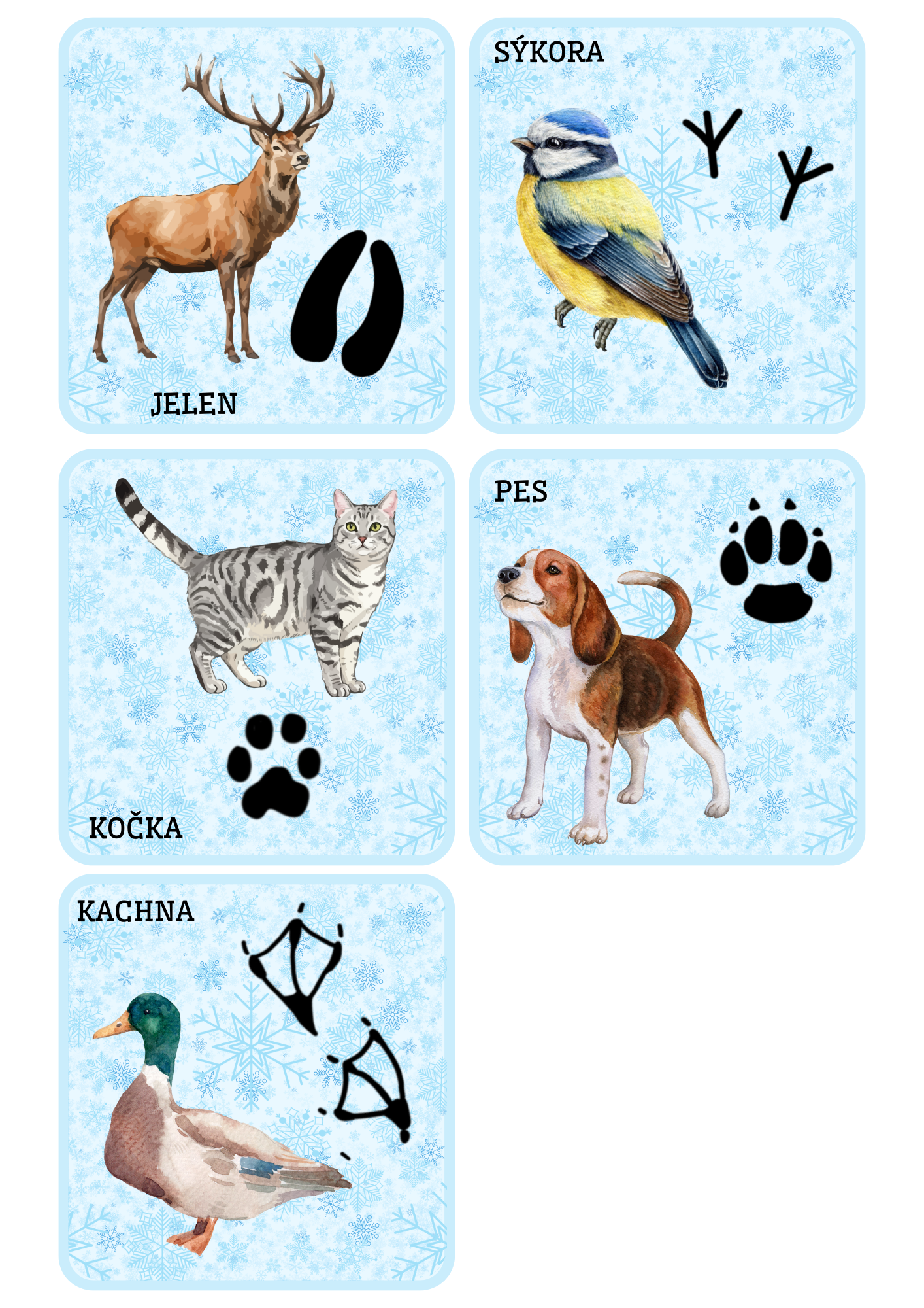 Děti pomocí lupy vyhledávají na kartičkách malé obrázky zvířecích stop a následně je porovnávají s velkými kartičkami, na kterých je vyobrazeno zvíře a jeho stopa. Na základě podobnosti přiřazují správnou stopu ke zvířeti a vytvářejí tak odpovídající dvojice.