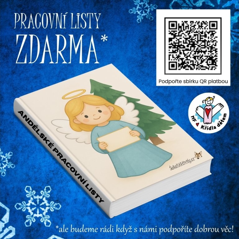 Součástí materiálu je QR kód, který vás (zcela dobrovolně) zavede na transparentní účet vánoční sbírky Nadačního fondu Křídla dětem. Pokud se rozhodnete přispět, finance posíláte přímo na účet nadačního fondu – bez prostředníků.