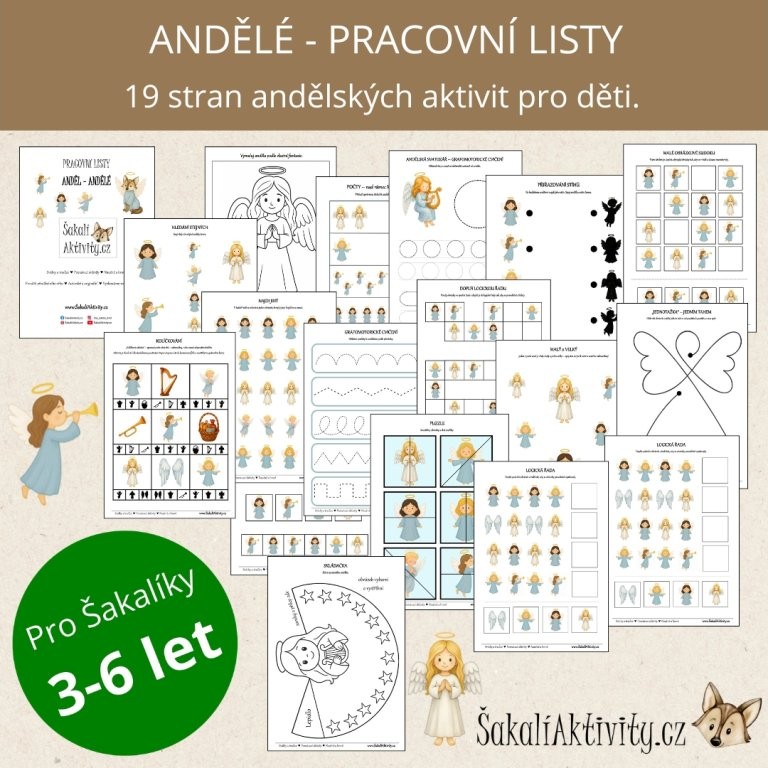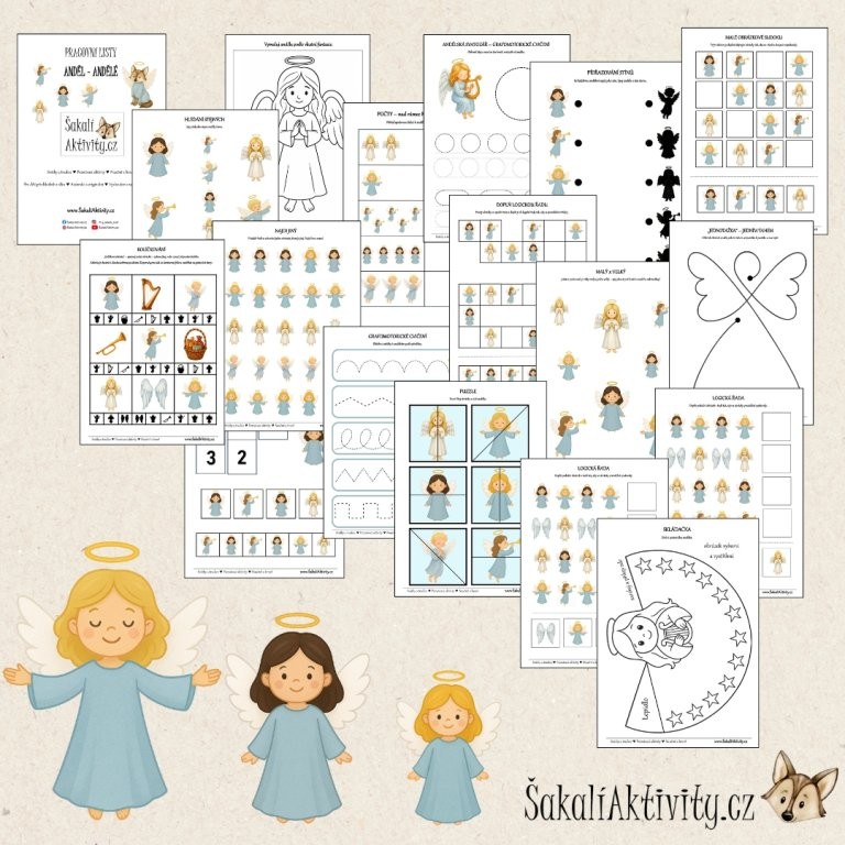 Tyto Andělské pracovní listy ZDARMA nejsou jen obyčejné pracovní listy. Jsou to výukové PDF aktivity s hlubším smyslem. Soubor je určen pro předškolní a mladší školní děti (3–6 let) a obsahuje pečlivě zpracované aktivity s andělskou a vánoční tematikou, vhodné pro školky, školy, družiny i domácí vzdělávání.