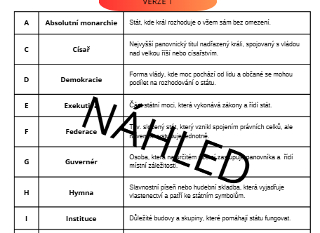 Hra je určena do hodin výchovy k občanství na druhý stupeň ZŠ nebo jako opakování na SŠ. Obsahuje různé pojmy s definicemi z oblasti stát. Hra nabízí 2 verze a ke každé verzi sadu náhradních otázek.