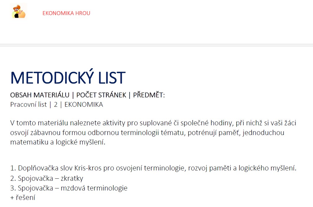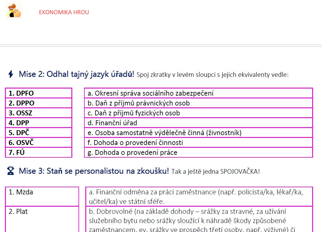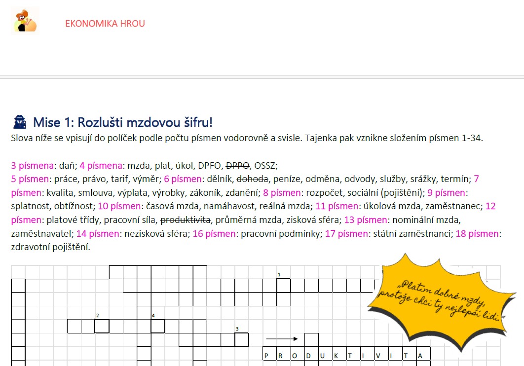 EKONOMIKA | MZDY A ZÁKONNÉ ODVODY Ekonomické luštění a pracovní list (suplovací, včetně řešení)