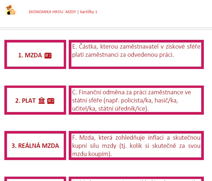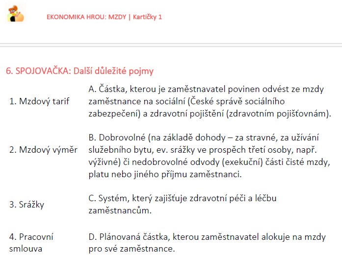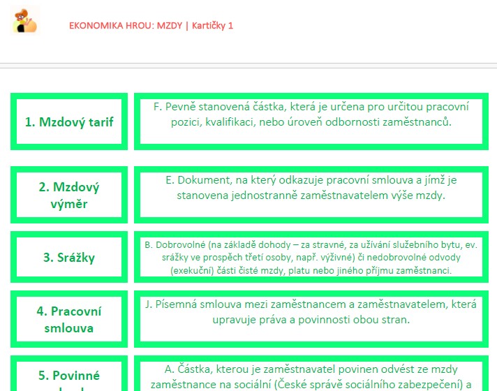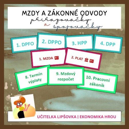 Tento balíček spojovaček a přiřazovaček k tématu mzdy a povinné odvody vám nabídne hned několik možností využití v hodině: od výkladu, přes opakování až po rychlé procvičení nebo testování.