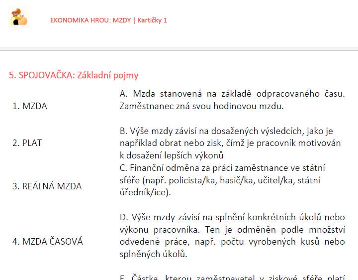 - Spojovačky pro vlepení do sešitu – připravené tak, aby žáci šetřili čas se zápisky a přitom měli klíčové pojmy na jednom místě.