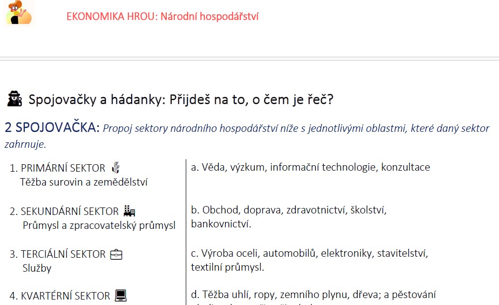 2. Spojovačka k tématu Sektory národního hospodářství + řešení