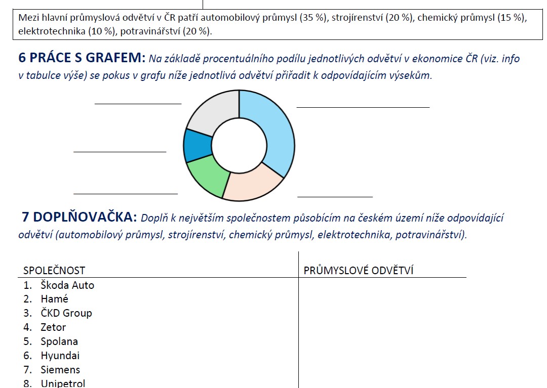 6. Práce s grafem k tématu Hlavní průmyslová odvětví v ČR + řešení