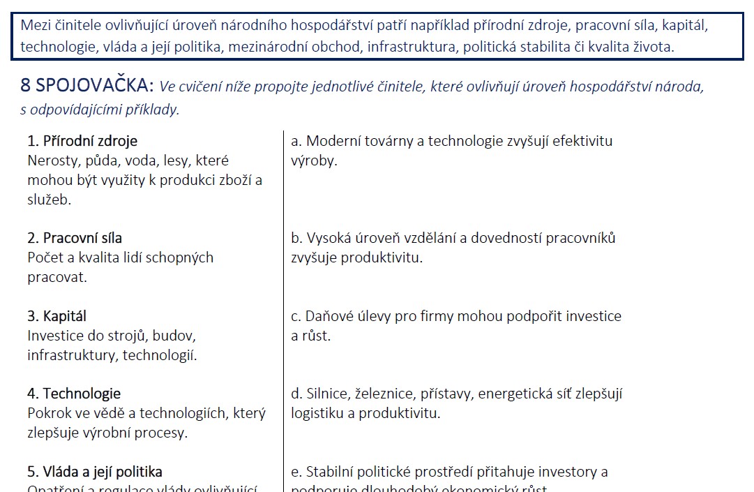 8. Spojovačka k tématu Činitelé národního hospodářství + řešení