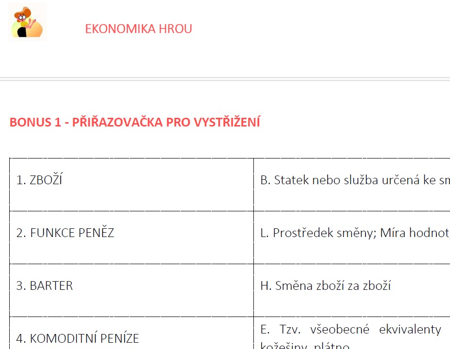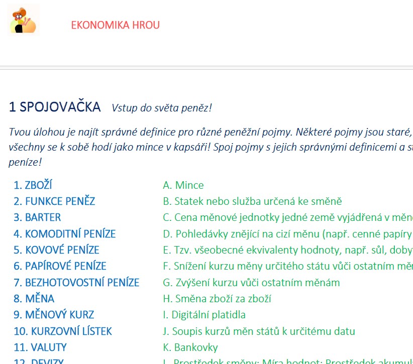 1. SPOJOVAČKA: Slovníček základních a důležitých pojmů k tématu Peníze