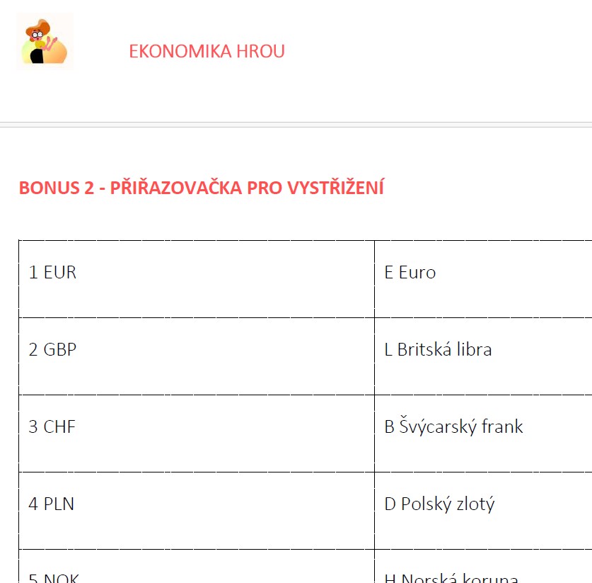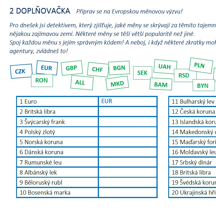 6. PŘIŘAZOVAČKA: Evropské měny (k vystřižení)