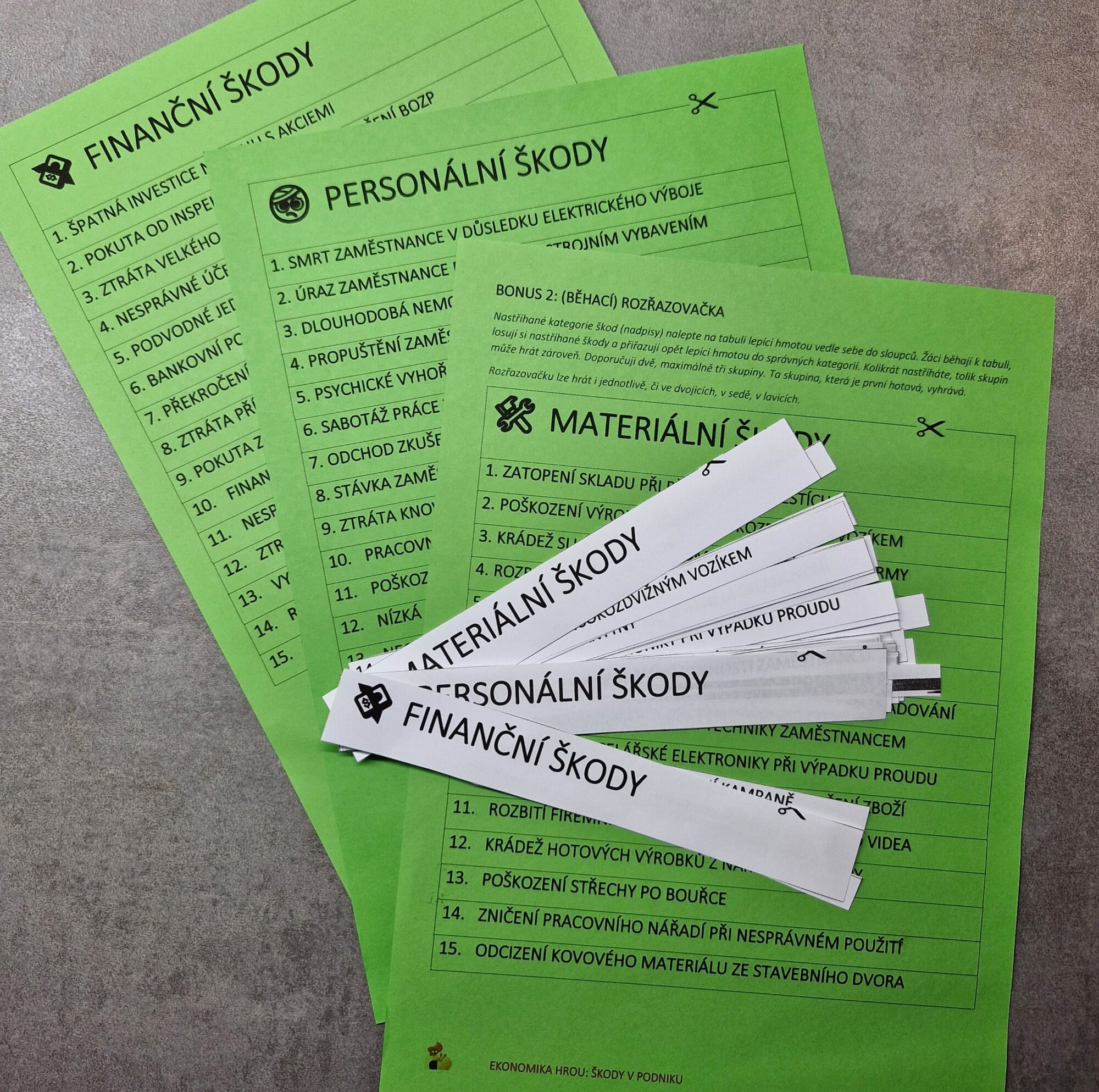 Bonus 2: (Běhací) Rozřazovačka – týmová hra k tématu materiální, personální a finanční škody k rozpohybování žáků.