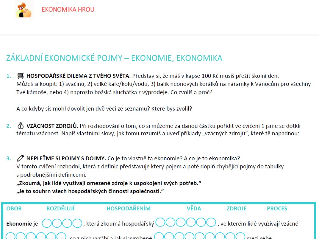 2. PLAKÁTY S EKONOMY A K NIM NAVAZUJÍCÍ CVIČENÍ
