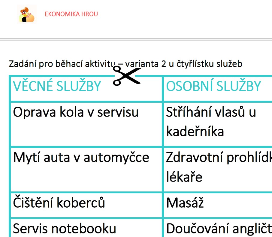 3. 🍀ČTYŘLÍSTEK SLUŽEB – RYCHLÁ TÝMOVÁ HRA. Dle zadání vyučujícího (viz. výsledky).