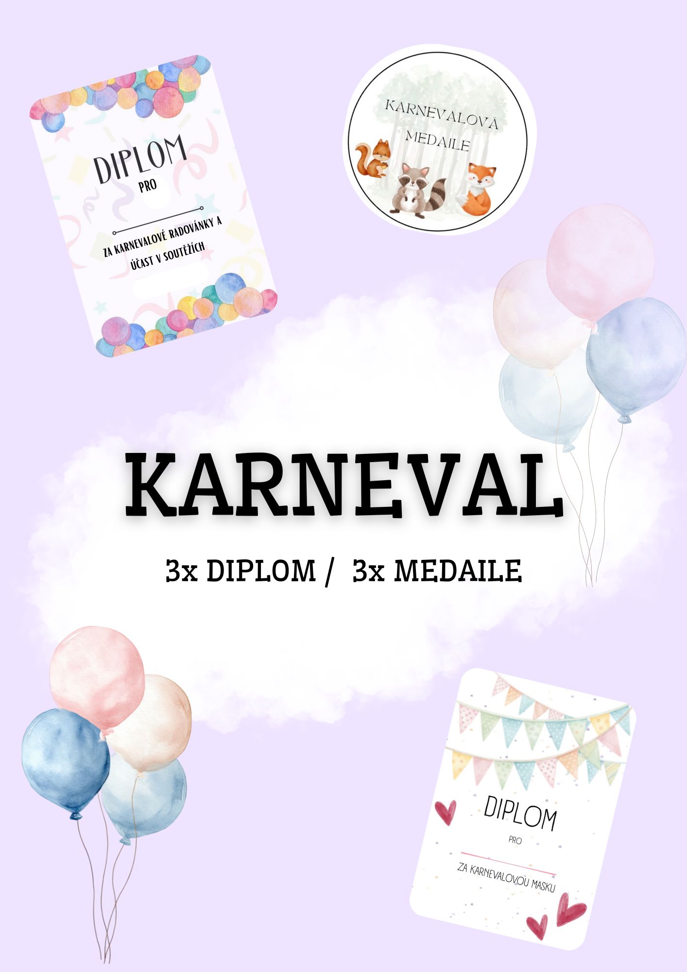 Tento soubor obsahuje 3 druhy karnevalových diplomů a k nim 3 druhy karnevalových medailí.
