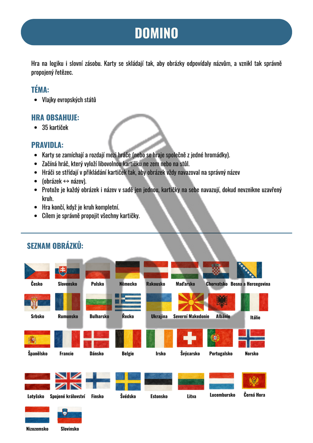 Hra na logiku i slovní zásobu. Karty se skládají tak, aby obrázky odpovídaly názvům, a vznikl tak správně propojený řetězec.