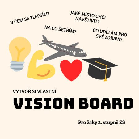 Materiál obsahuje 15 různých štítků (obrázek s popisem) a dalších několik motivačních nápisů a obrázků, ze kterých sestavíte dokonalý vision board.