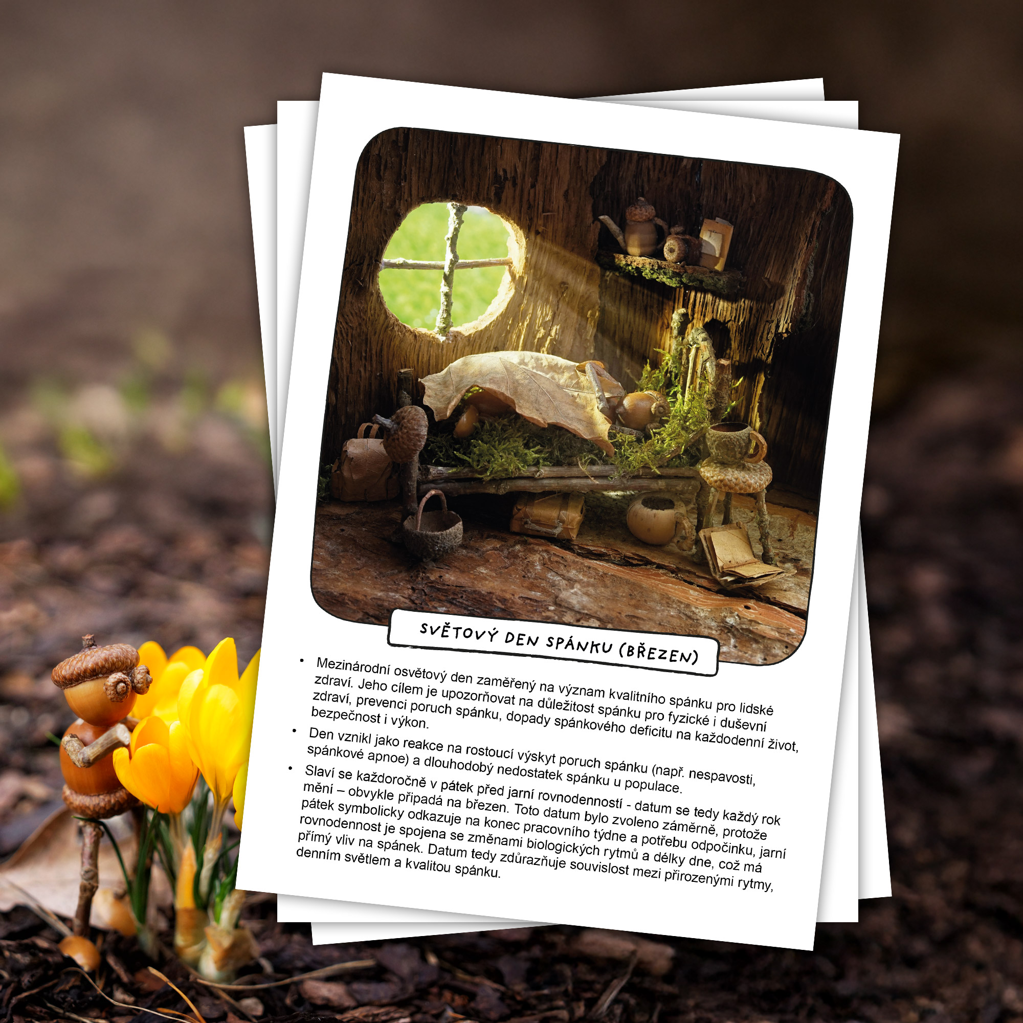 🎙️ Žákovské referáty – rozdejte karty dětem (nebo skupinkám), nechte je dohledat další informace a připravit krátký referát či prezentaci k danému dni.