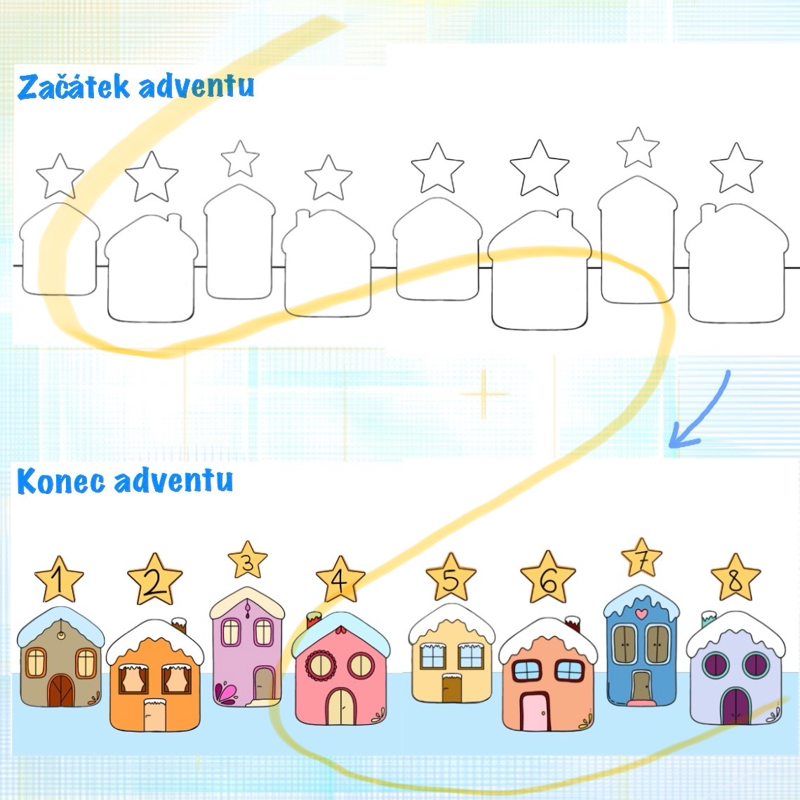 Šablona slouží jako základ velké třídní adventní vesničky.