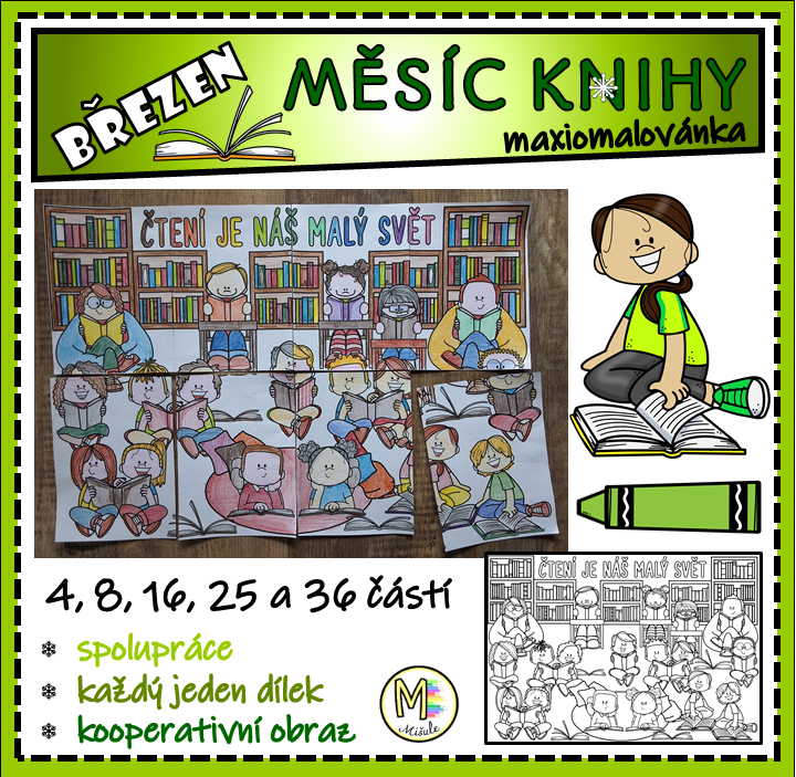 Tato kooperativní maxiomalovánka je ideální volbou pro období Března – měsíce knihy i kdykoliv během školního roku.