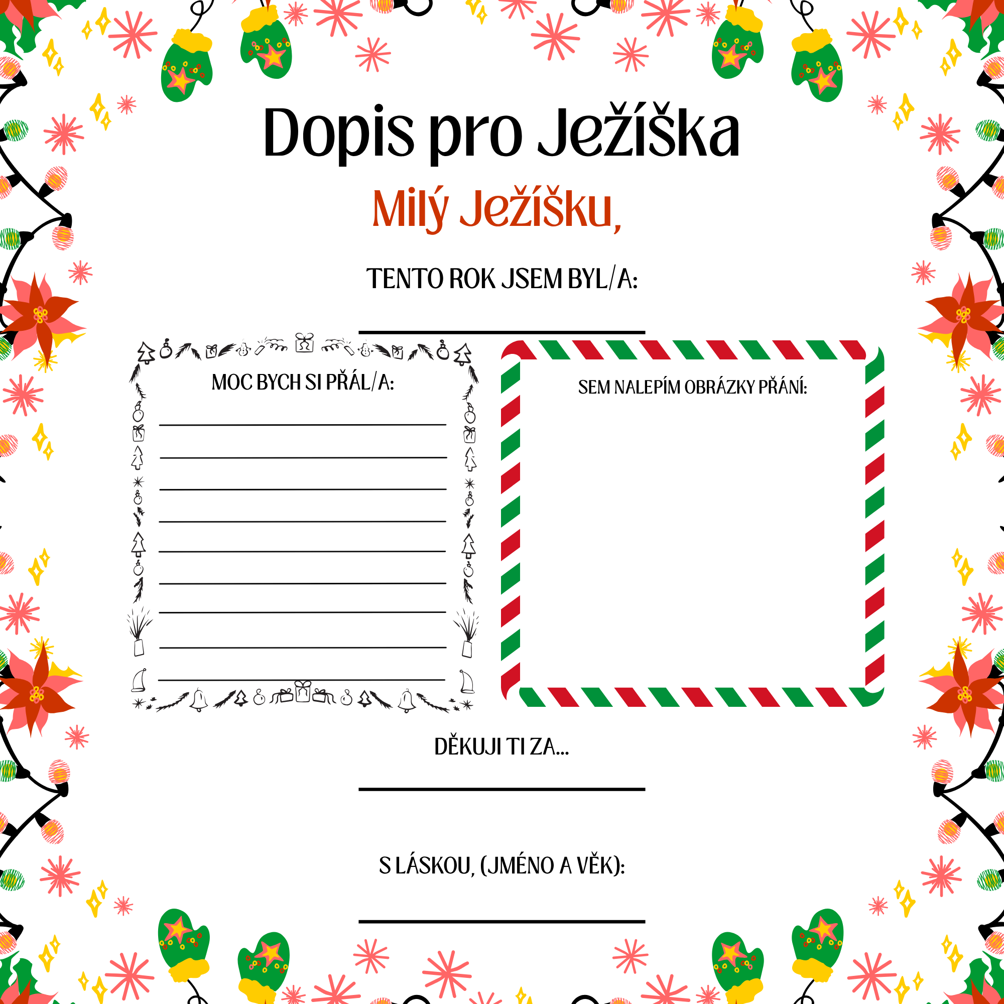 Kouzelný Dopis pro Ježíška – Šablona k vytištění a vlastnímu dotvoření!