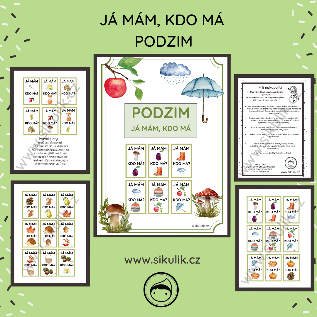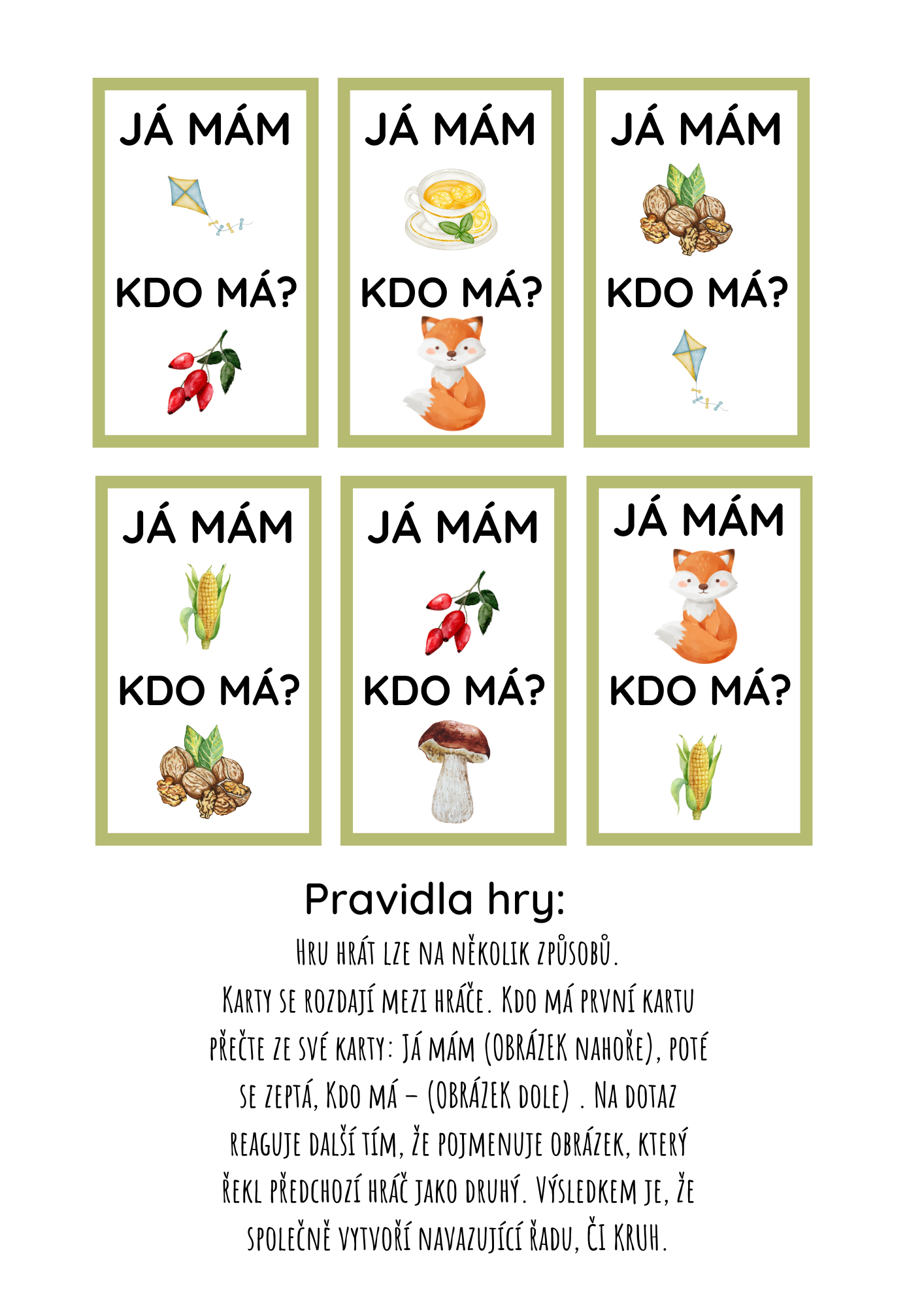 Sada obsahuje 24 hracích kartiček s motivy podzimu.
