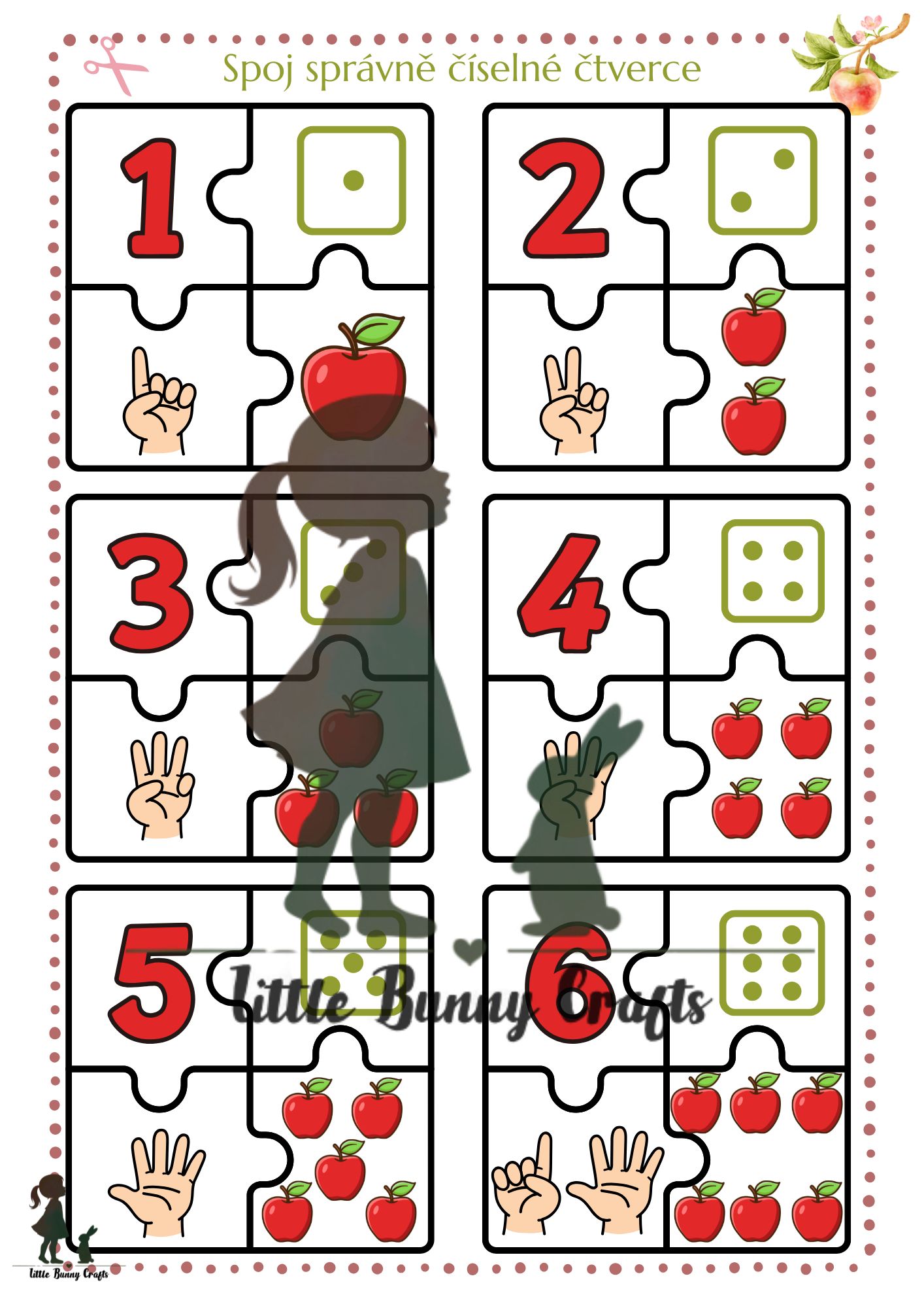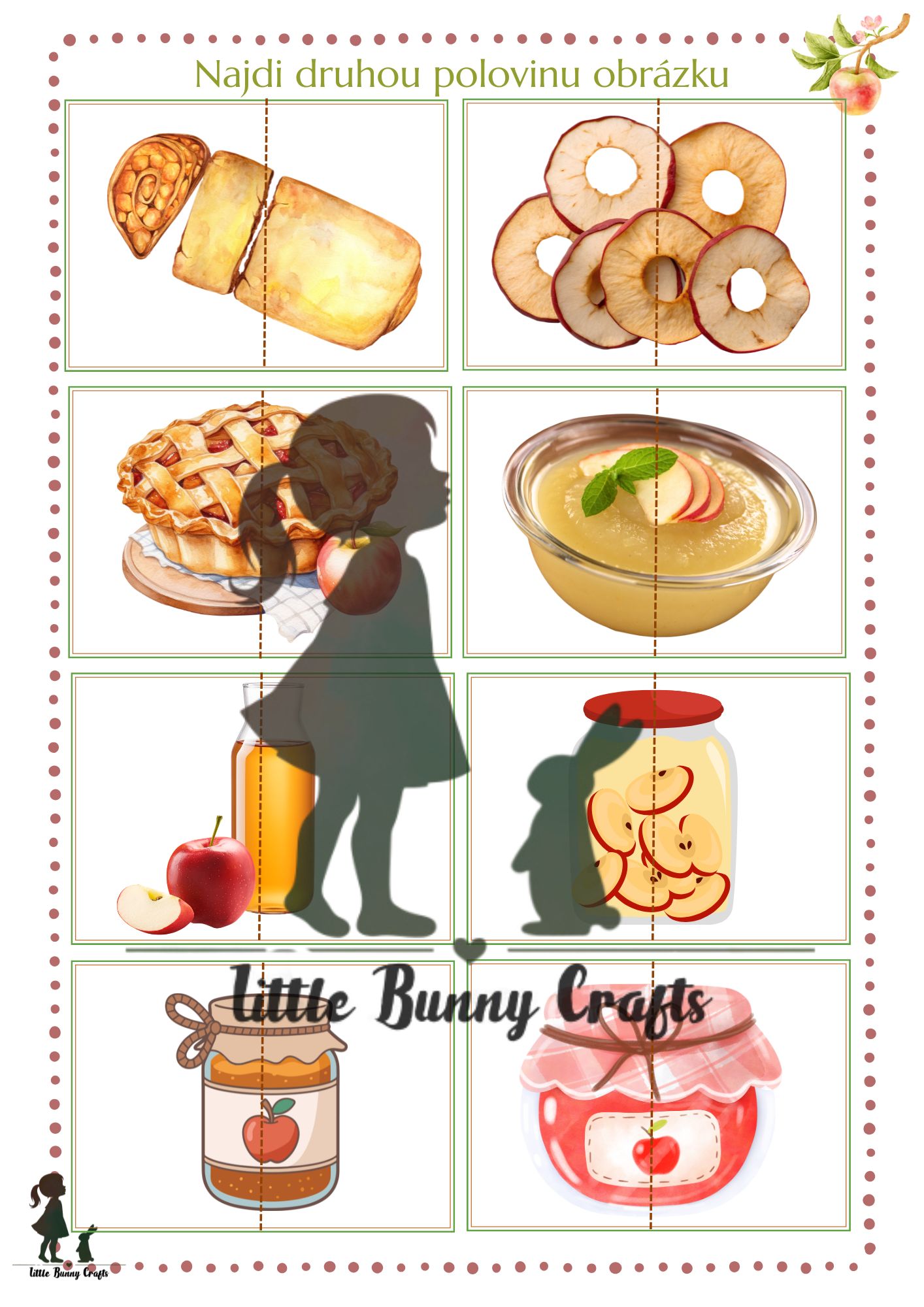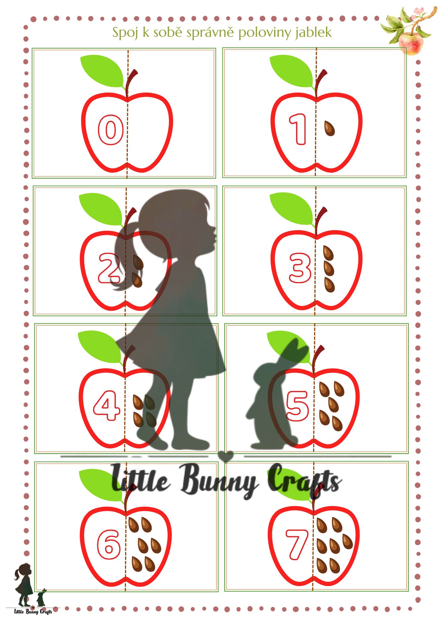 - 1 list - skládání jablečných obrázků - 8 obrázků