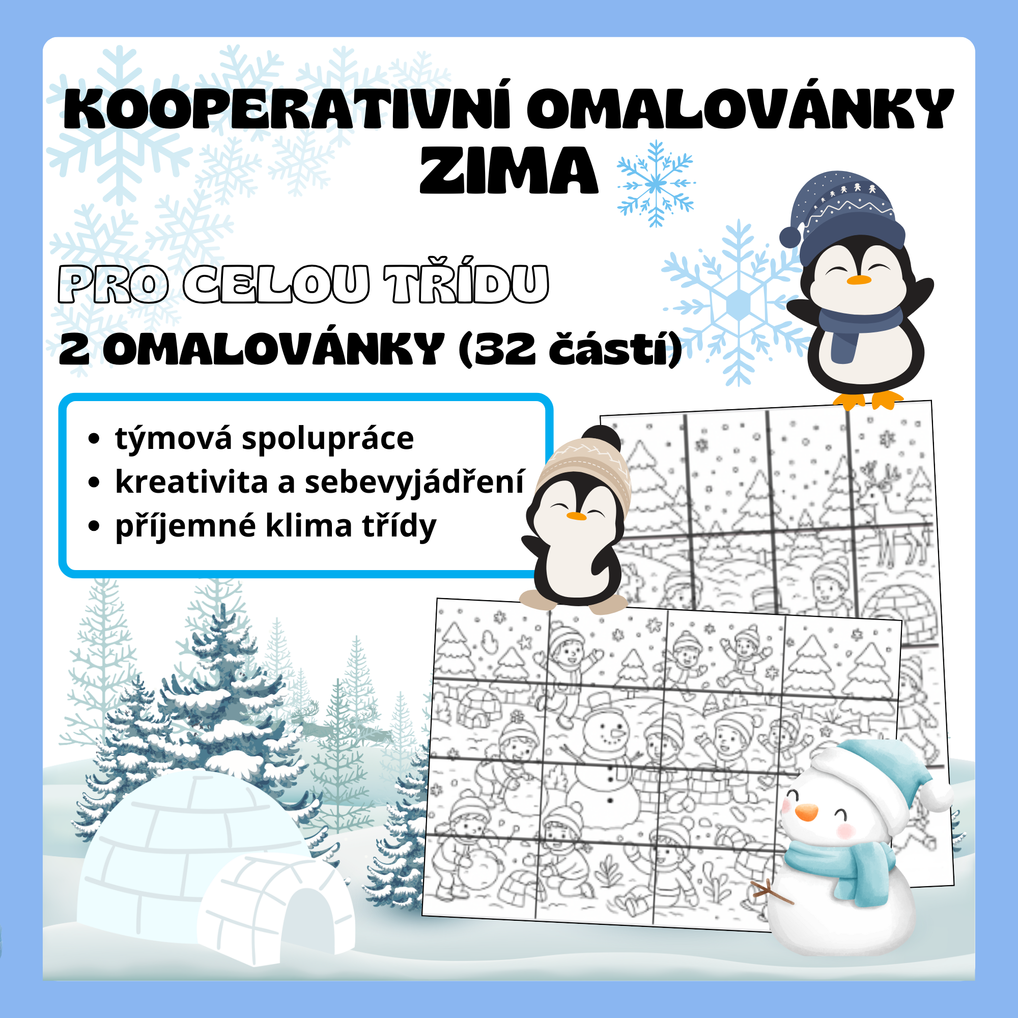 - 2 zimní omalovánky po 16 částech - celkem 32 obrázků k vymalování