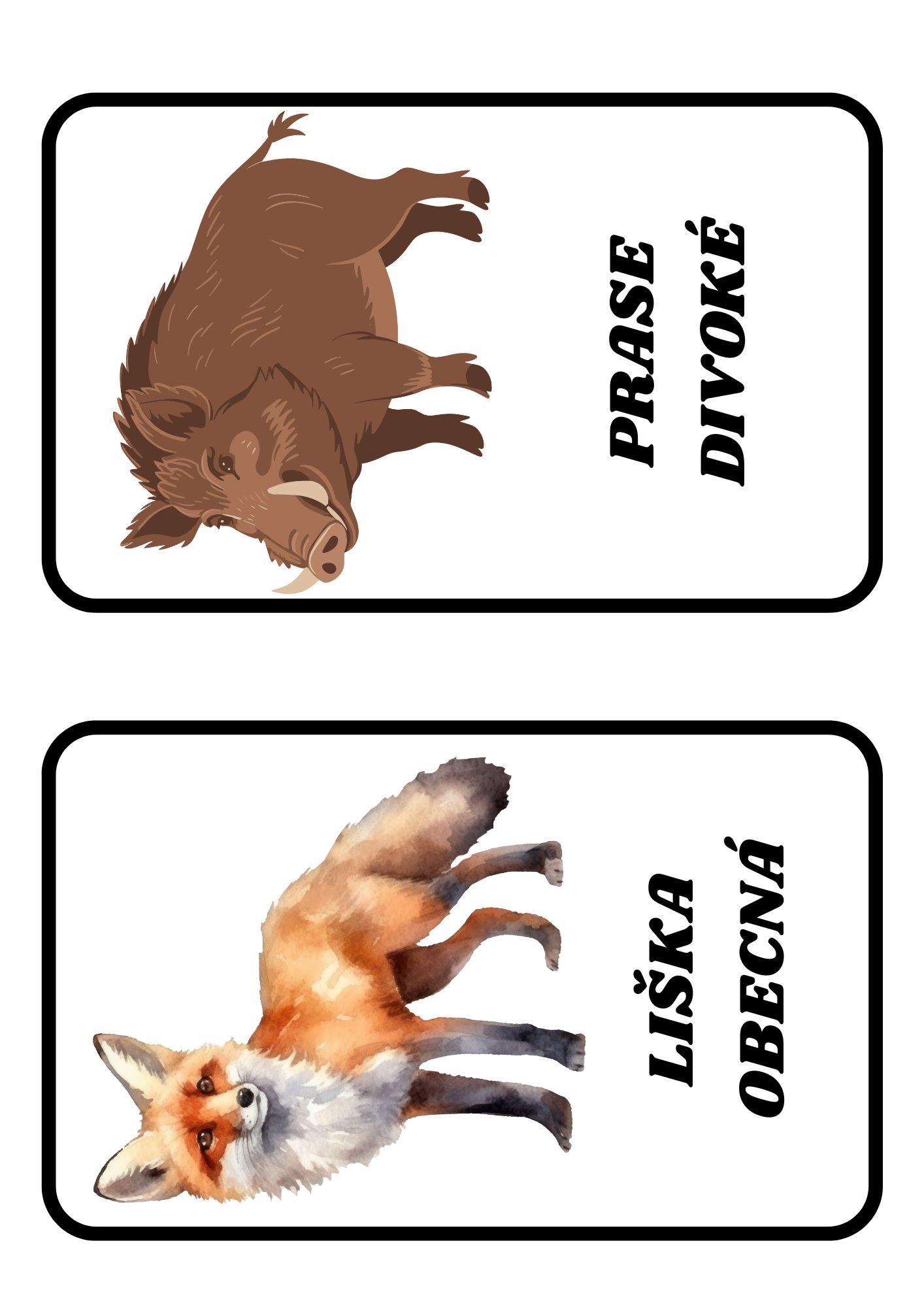 Pexeso obsahuje dvojice 30 druhů lesní zvěře