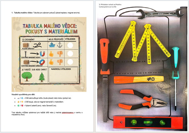 U každé aktivity popsané pomůcky, postupy, cíle