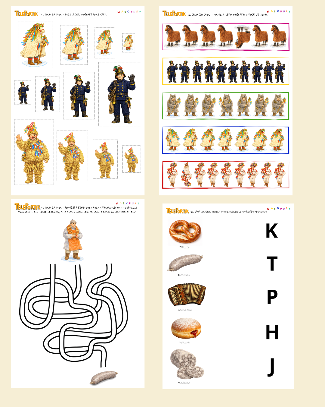 Masopust je období plné barev, hudby, masek a radosti. V tomto tematickém materiálu přibližujeme dětem ve věku 3–7 let lidové zvyky a tradice srozumitelnou, hravou a pedagogicky promyšlenou formou, která přirozeně propojuje poznávání, pohyb, řeč i logické myšlení.