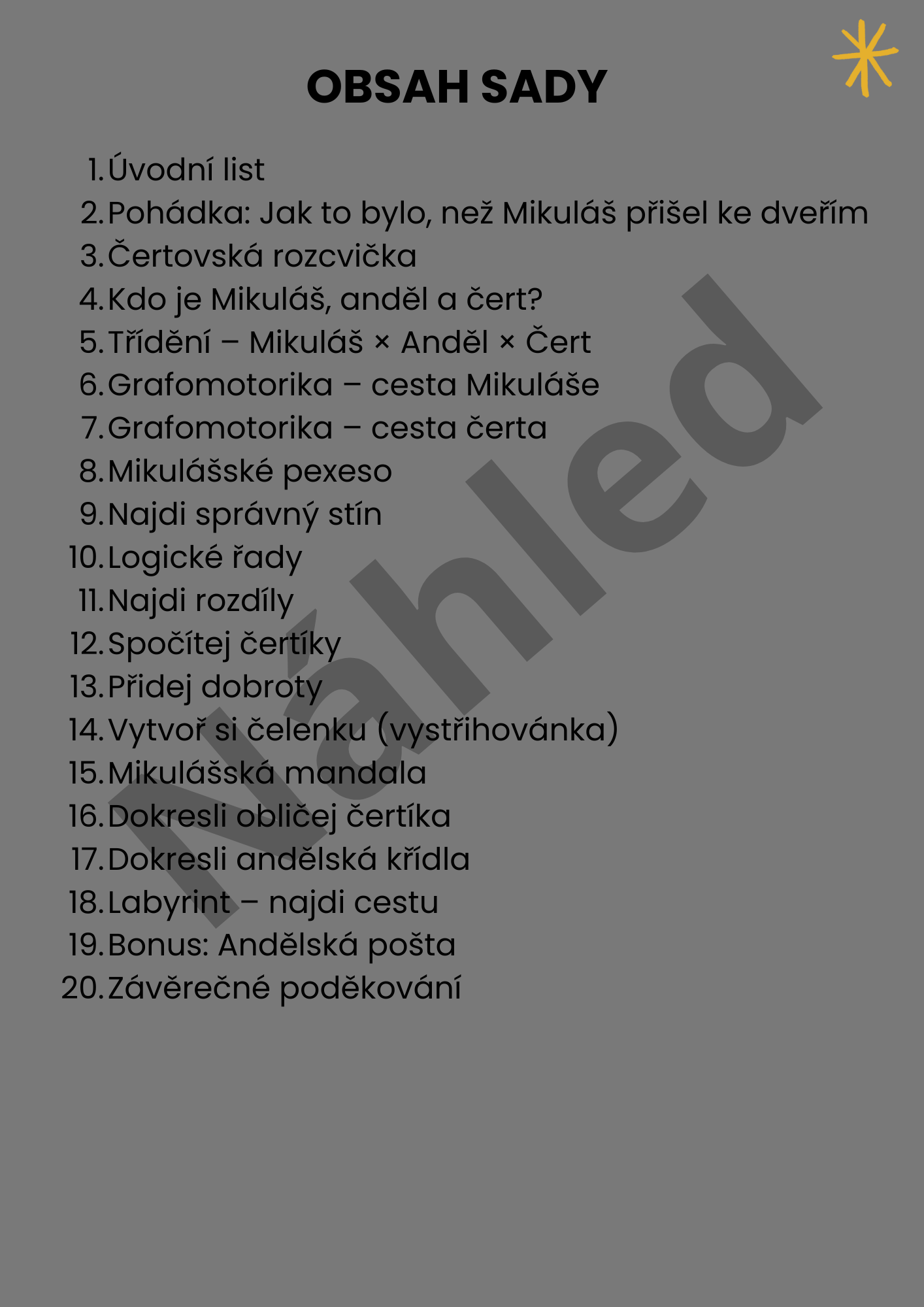 Mikulášská sada pro MŠ obsahuje 18 různorodých aktivit pro děti od 3 do 6 let.