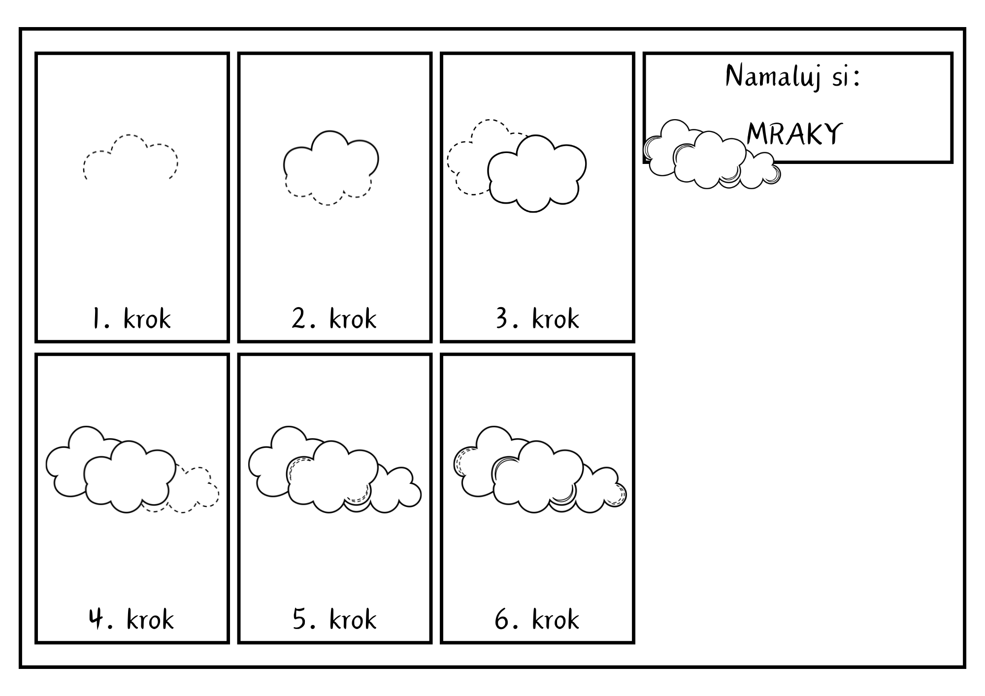Zábavné pracovní listy, které děti provedou krok za krokem řízenou kresbou na téma počasí.