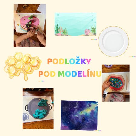 Podložky pod modelínu pomáhají rozvíjet jemnou motoriku, koordinaci oka a ruky Děti pracují s modelínou na podložkách z různého prostředí, která podporují soustředění, klidnou práci a samostatnost.