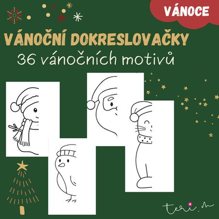 36 vánočních dokreslovaček k doplnění a vybarvení.