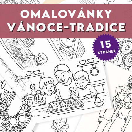 Najdete v ní tradiční i rodinné vánoční scény – od betléma, Barborek, lodiček, házení střevícem až po pečení cukroví či radost u stromečku. Skvělé pro adventní tvoření doma, ve školce i ve škole.