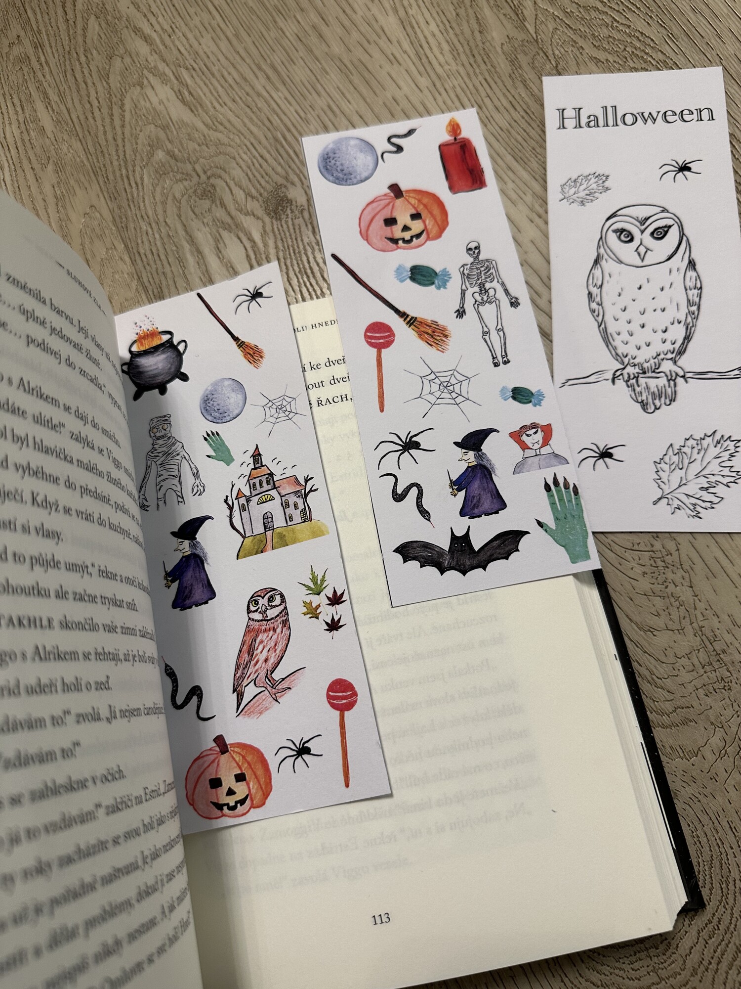 Záložky můžete využít jako dárek pro děti a zvolit barevnou nebo černobílou variantu vhodnou k vybarvení nebo k tisku na barevné papíry.