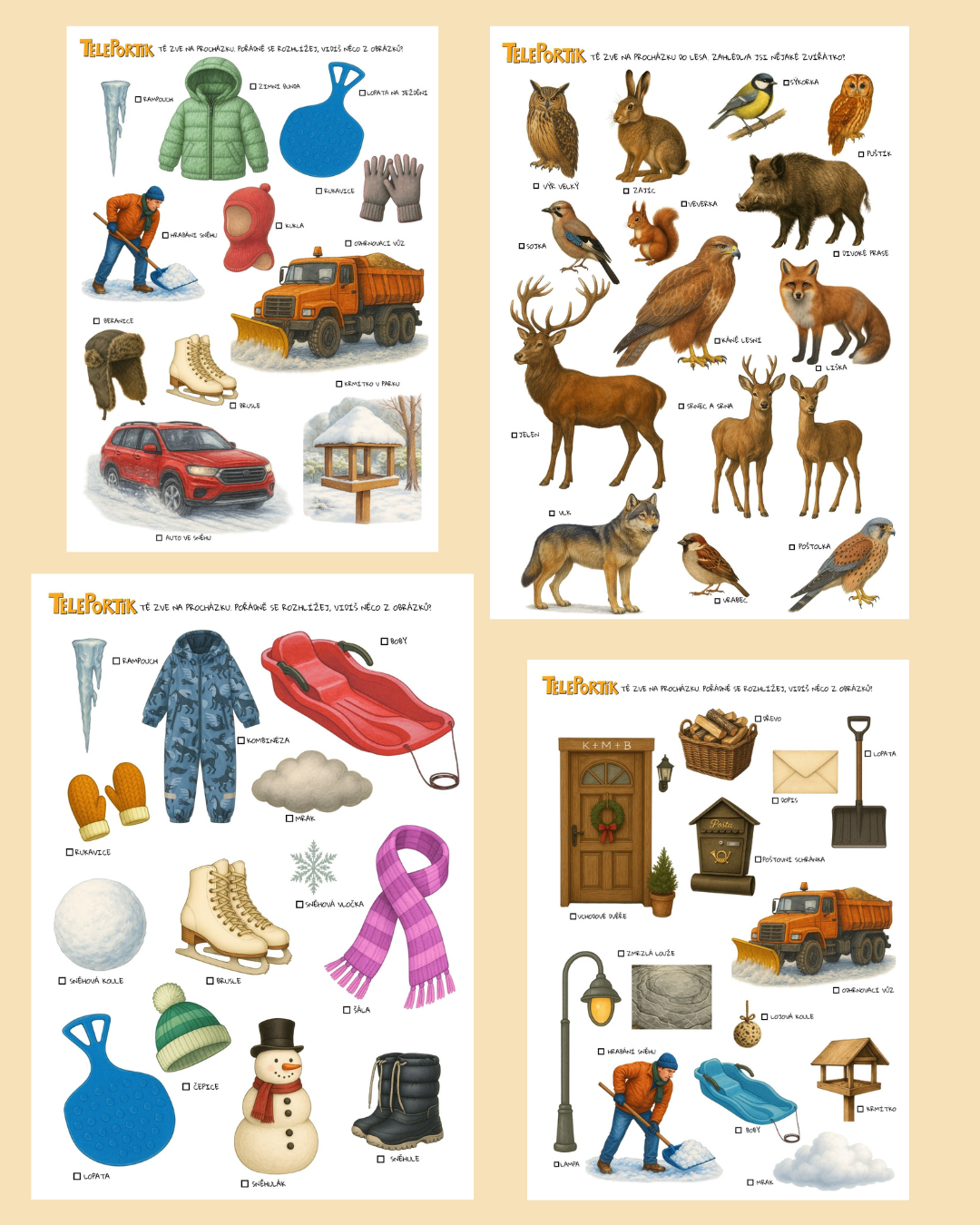 - poznávání a pojmenovávání zimního oblečení,