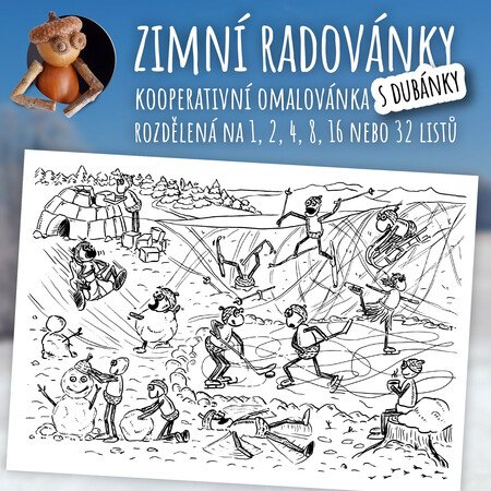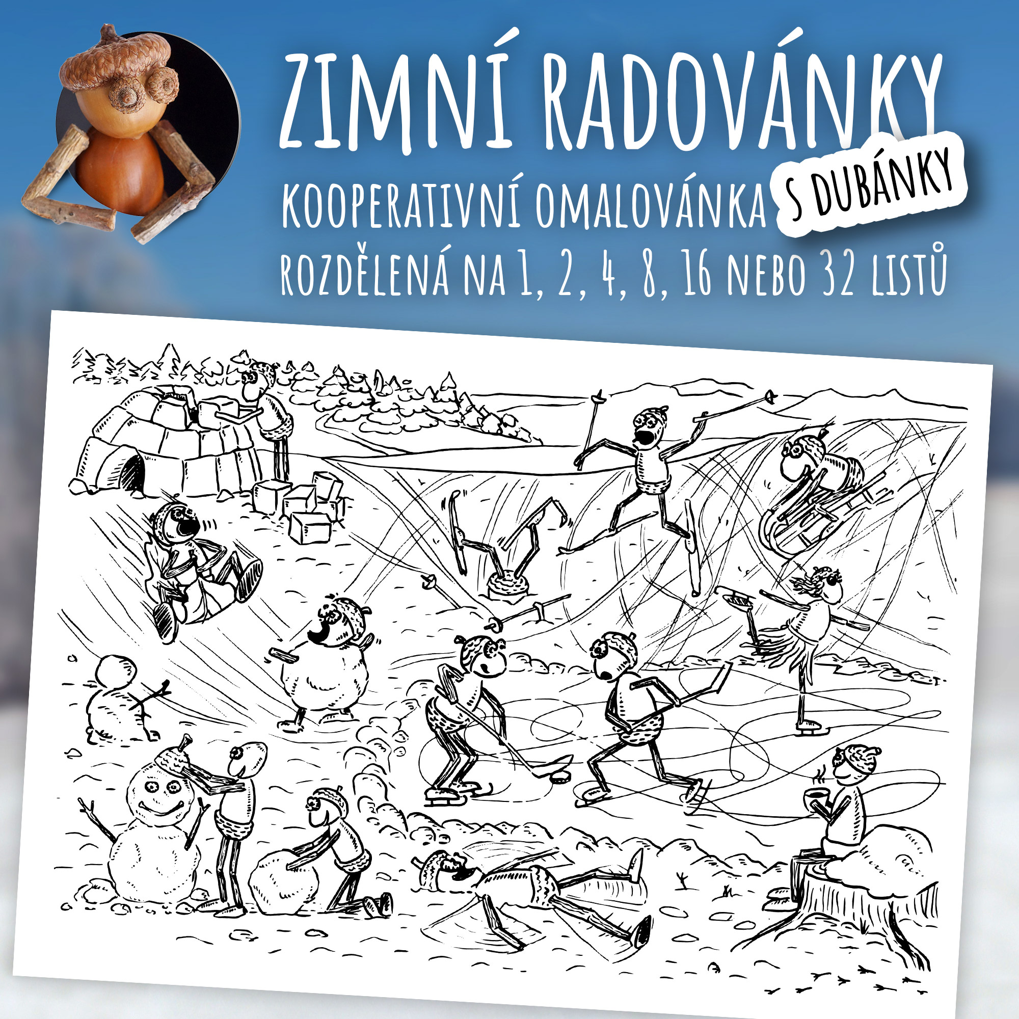 Zimní radovánky jsou velká kooperativní zimní omalovánka s dubánky, která děti vtáhne do světa zimních her a zábavy. Na jednom velkém obrázku dubánci staví sněhuláka, sáňkují, lyžují, bruslí, krasobruslí, hrají hokej, staví iglú i vytvářejí andělíčky ve sněhu, takže každé dítě si najde část, která ho baví.