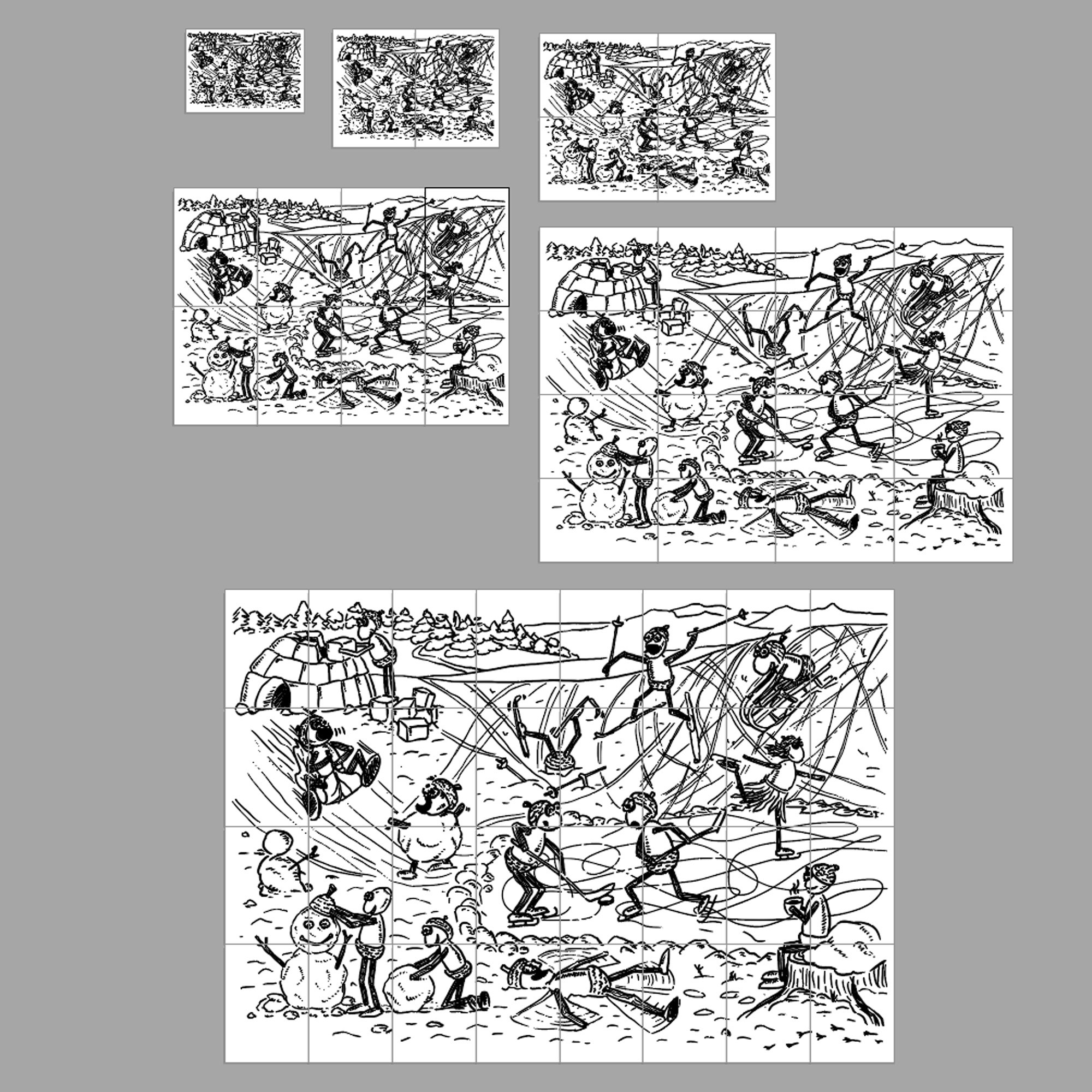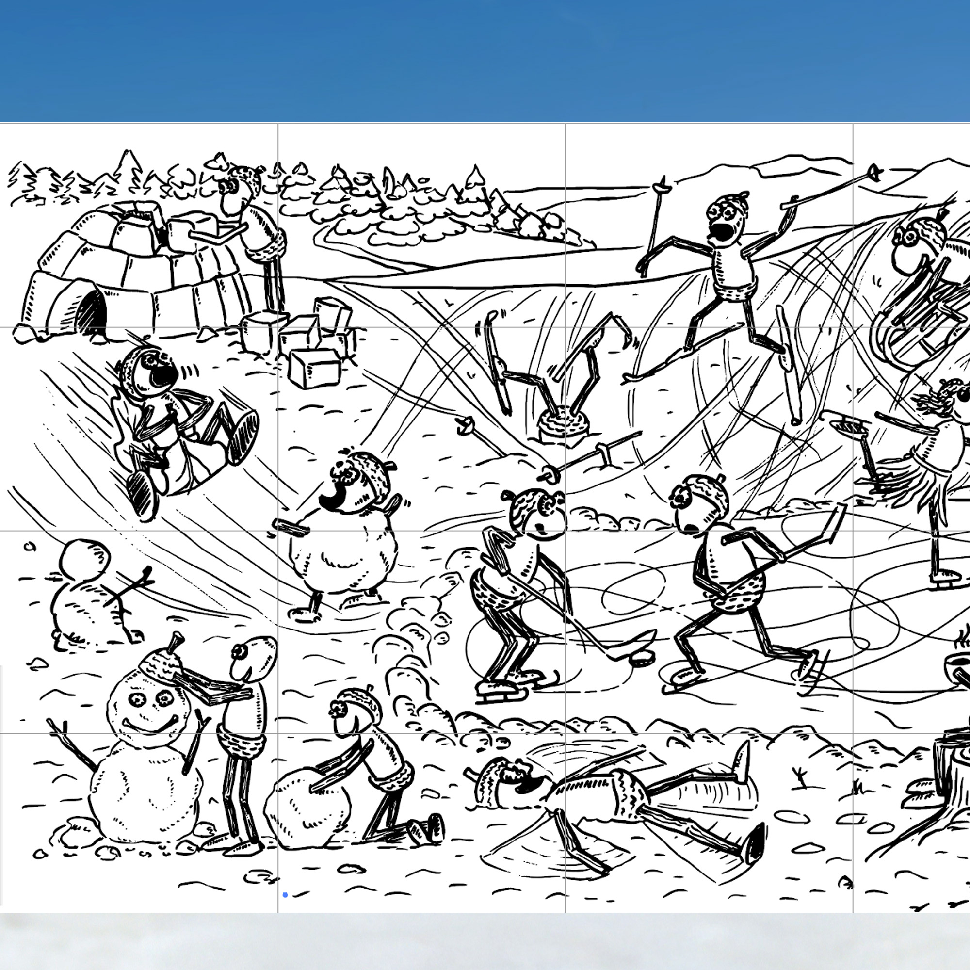 Omalovánka je navržena pro společné vybarvování – podporuje spolupráci, komunikaci, domlouvání se na barvách i rozdělení práce. Učitel si může zvolit velikost podle počtu dětí a prostoru ve třídě: od jedné A4 pro jednotlivce, přes 2, 4, 8, 16 stránkové verze až po velkoformátovou variantu složenou z 32 archů A4, ideální pro práci celé třídy nebo skupiny.