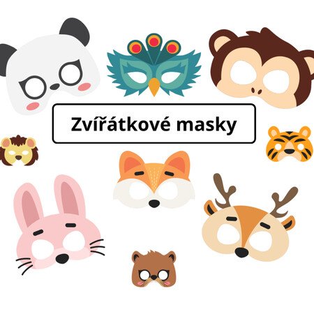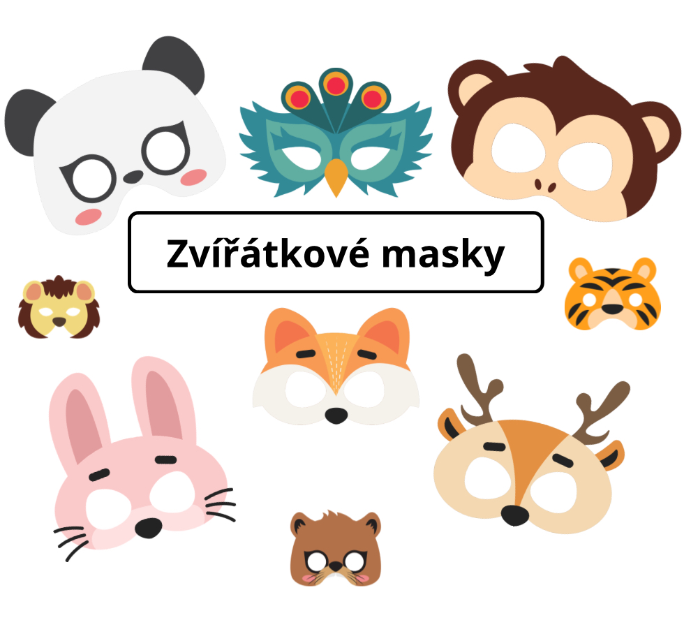 Soubor obsahuje 25 masek zvířátek - králík, prasátko, tygr, lev, ptáček, žirafa, pes, kočka, jelen, liška, ježek, lenochod, páv, panda, medvěd, kachna, sova, zebra, koala, ryba, beruška, jezevec, bobr, koza, opice.
