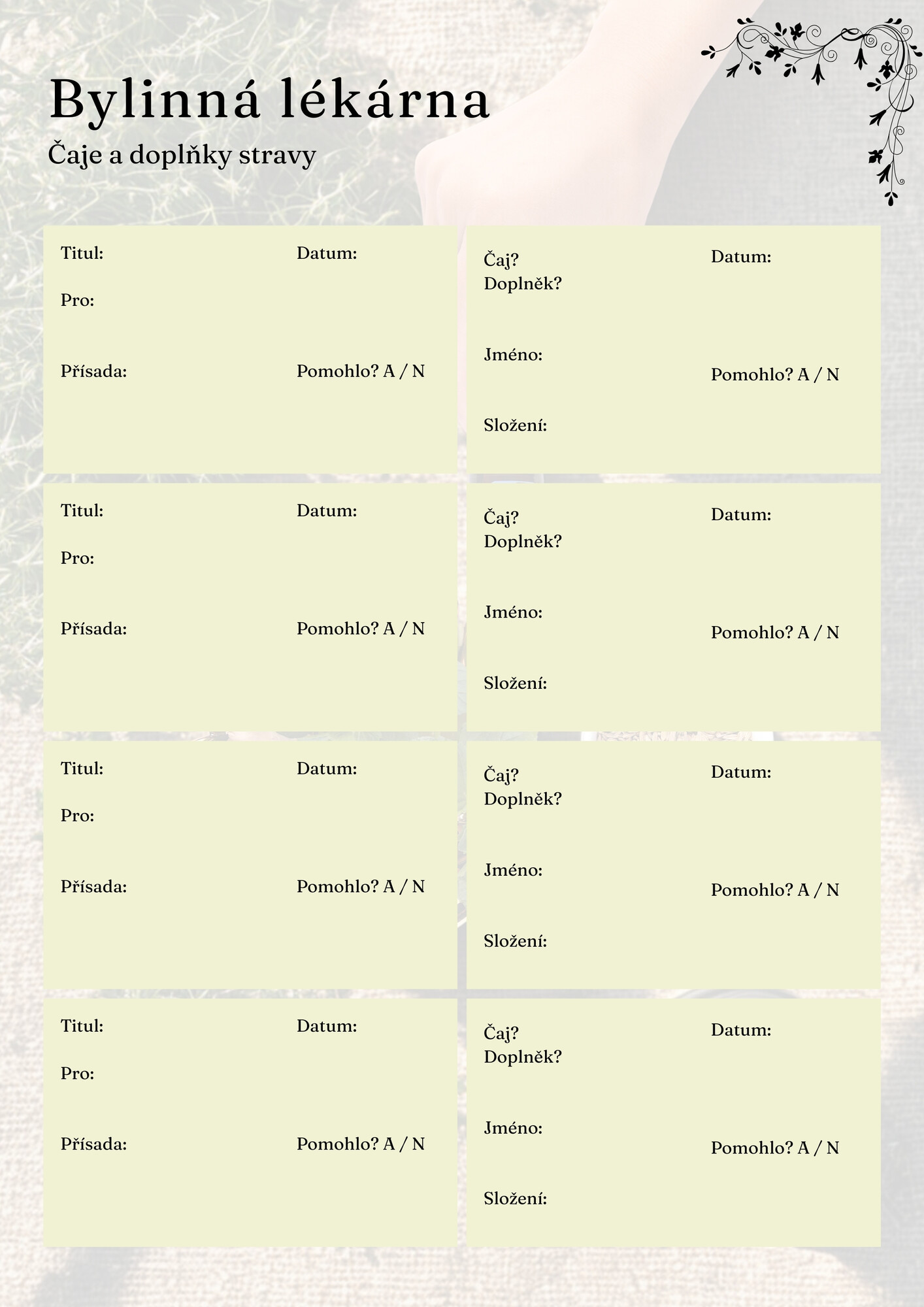 • Přípravy: Dokumentujte své vlastní recepty, dávkování a