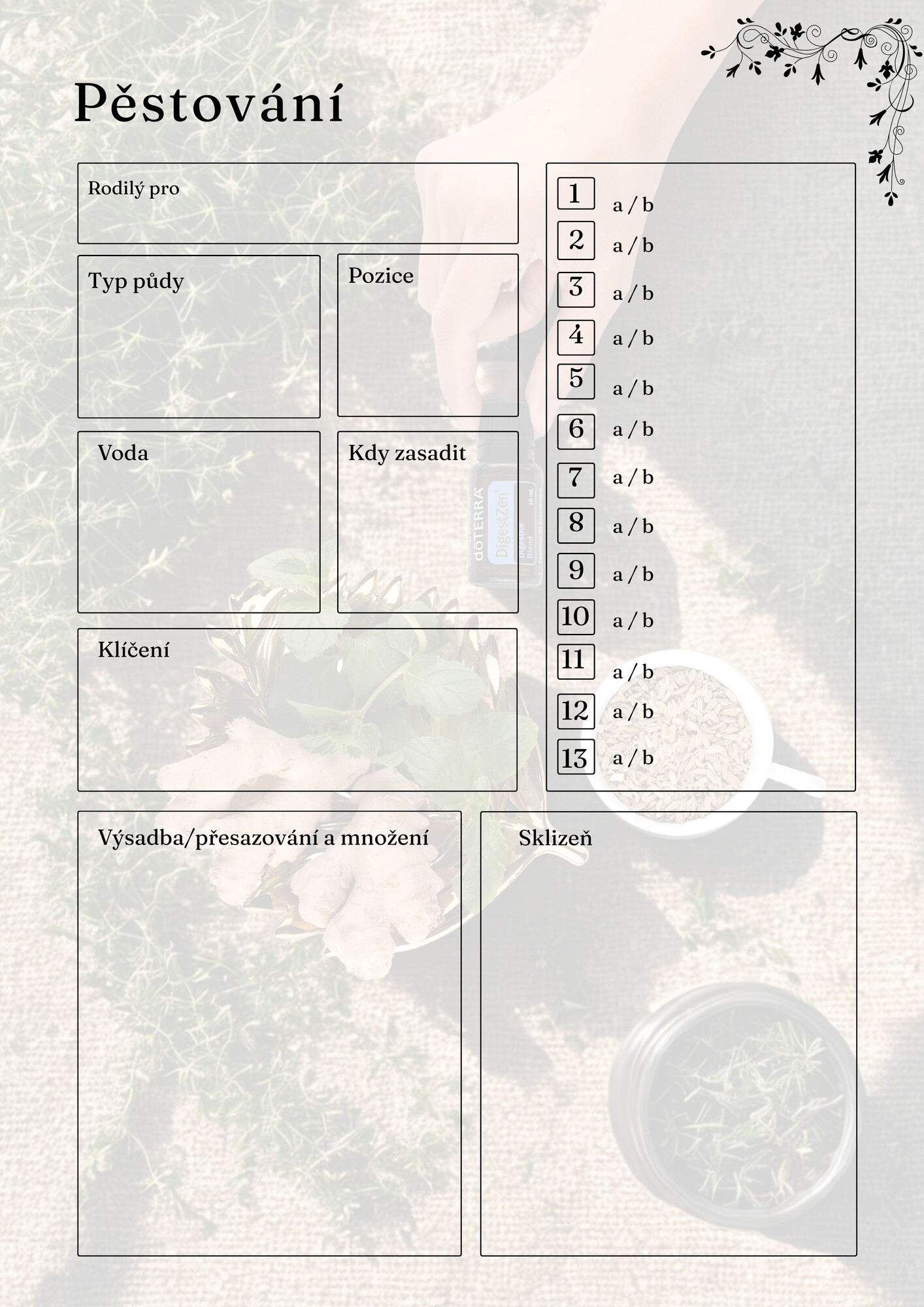 • Identifikace: Zaznamenejte botanické detaily a nákresy