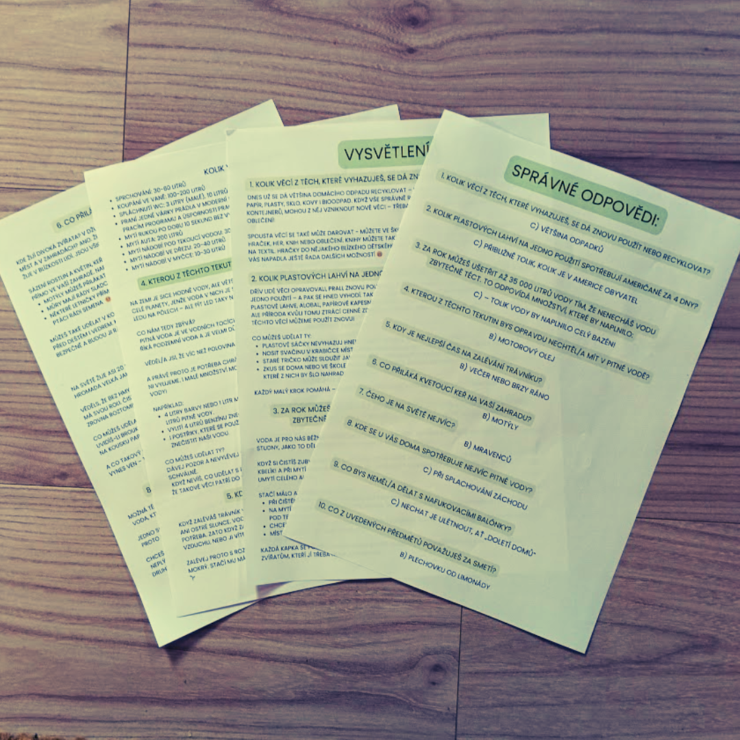 - list se správnými odpověďmi + vysvětlením (pro děti)
