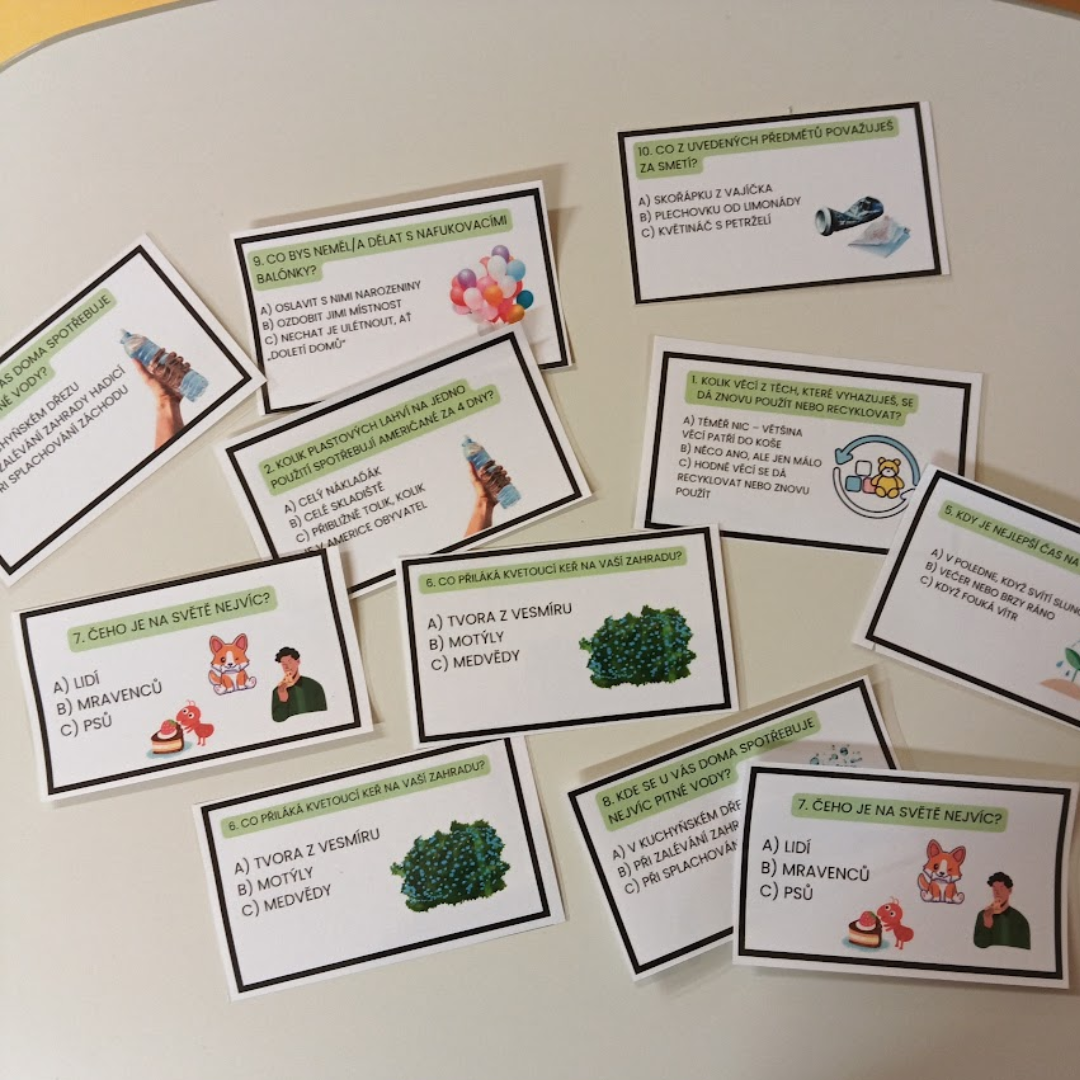 - vytiskněte otázky – vystřihněte a zalaminujte