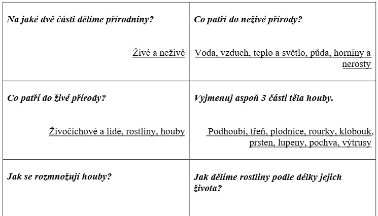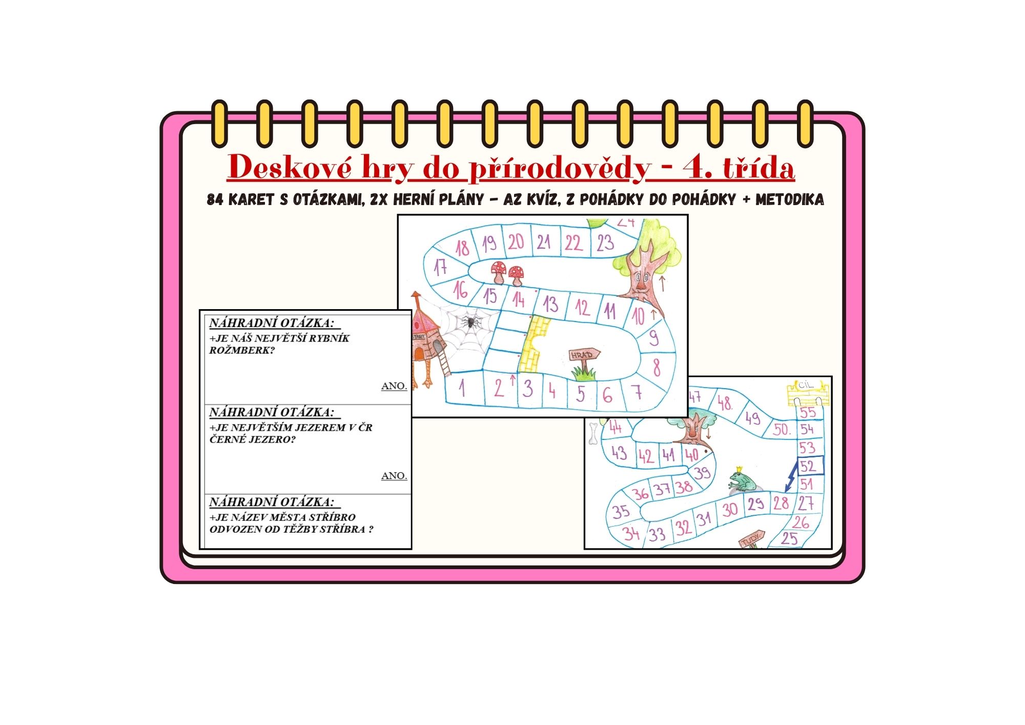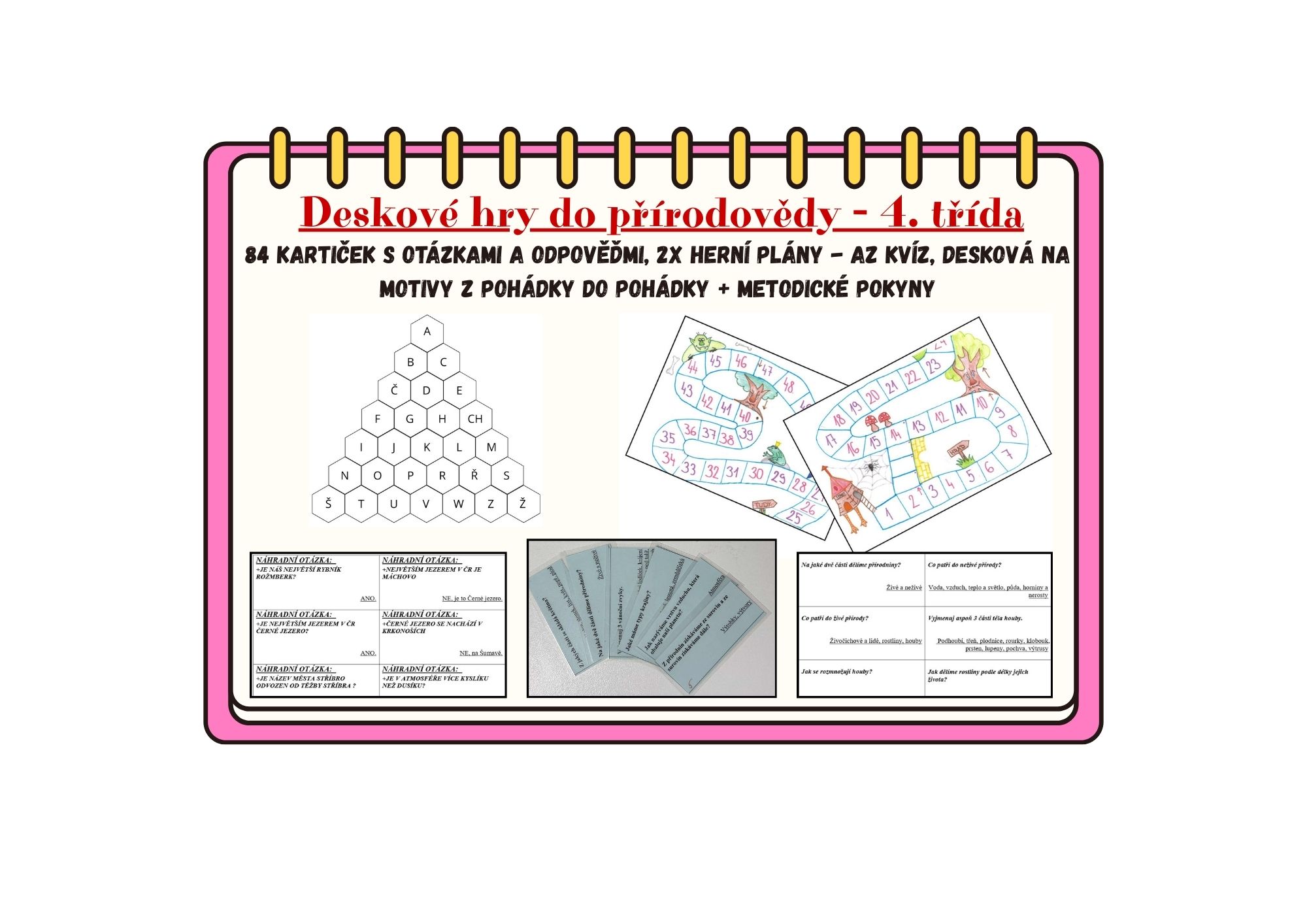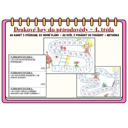 Aktivizační hry do výuky přírodovědy. Materiál obsahuje 2 různá herní pole a 80 kartiček s otázkami a odpověďmi z přírodovědy pro 4. třídu.
